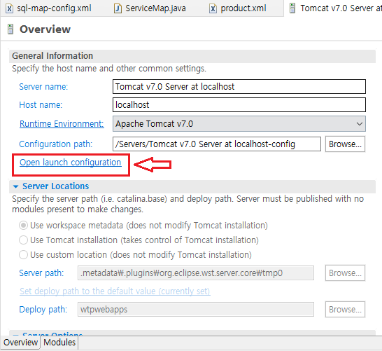 서버 설정 탭에서 아파치 톰켓 서버를 더블 클릭하자.
