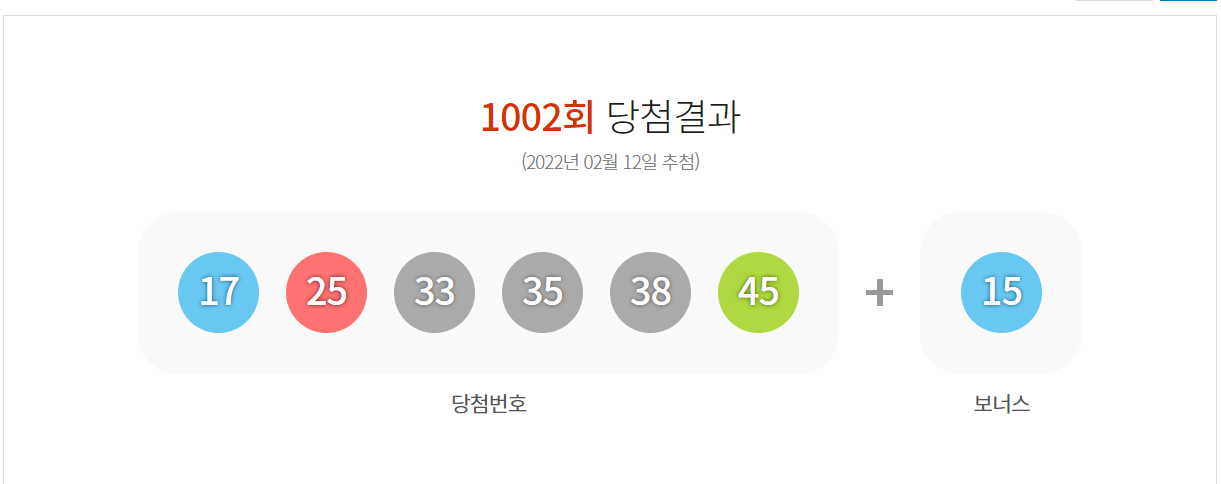 1등 로또 당첨번호는 17,25,33,35,38,45 (보너스 번호 15) 입니다
