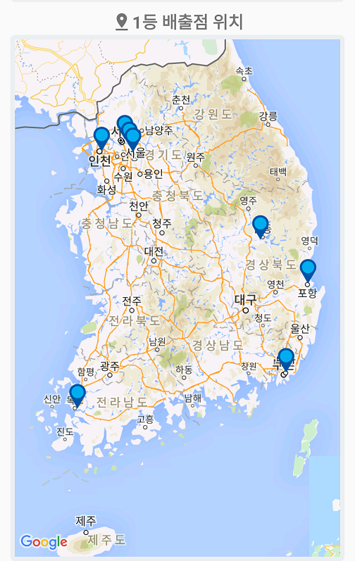 1002회 로또 1등 당첨지역 위치 지도 표기