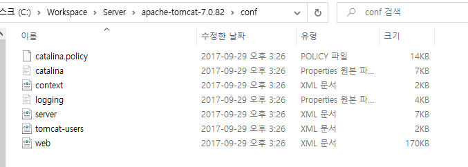 C:WorkspaceServerapache-tomcat-7.0.82conf