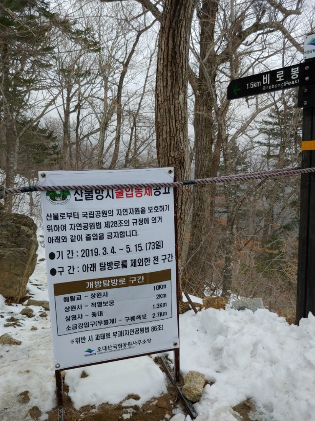 2019년 5월 15일까지 오대산은 출입 통제기간이니 정상에는 못올라 가요~~
