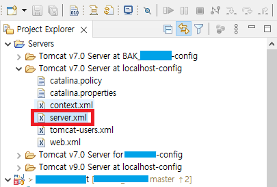 3. server.xml 파일을 클릭하여 열어준다.
