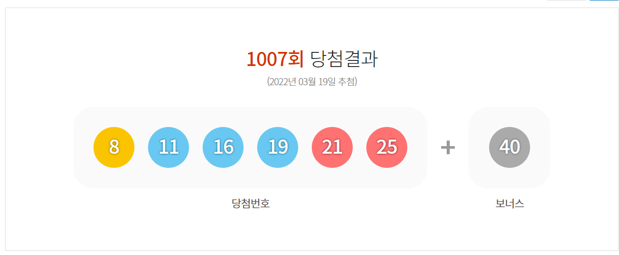 1007회 로또 당첨번호입니다.