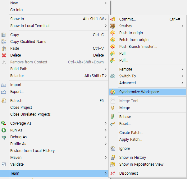 이클립스에서 무료 Git 라이브러리를 사용하는 경우