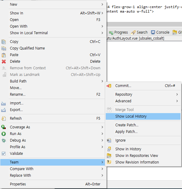 그래서 별도의 라이브러리 Local History를 설치해야한다.