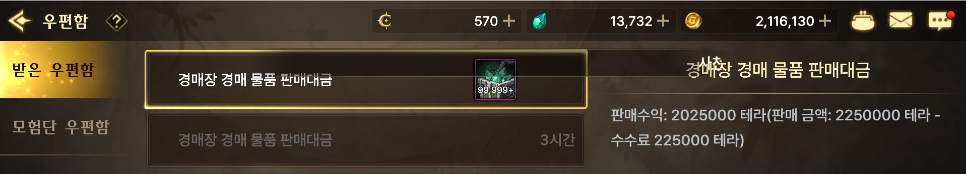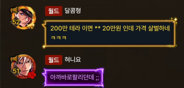 내가 게임중인 아리스서버는 225만테라에 판매중이다.