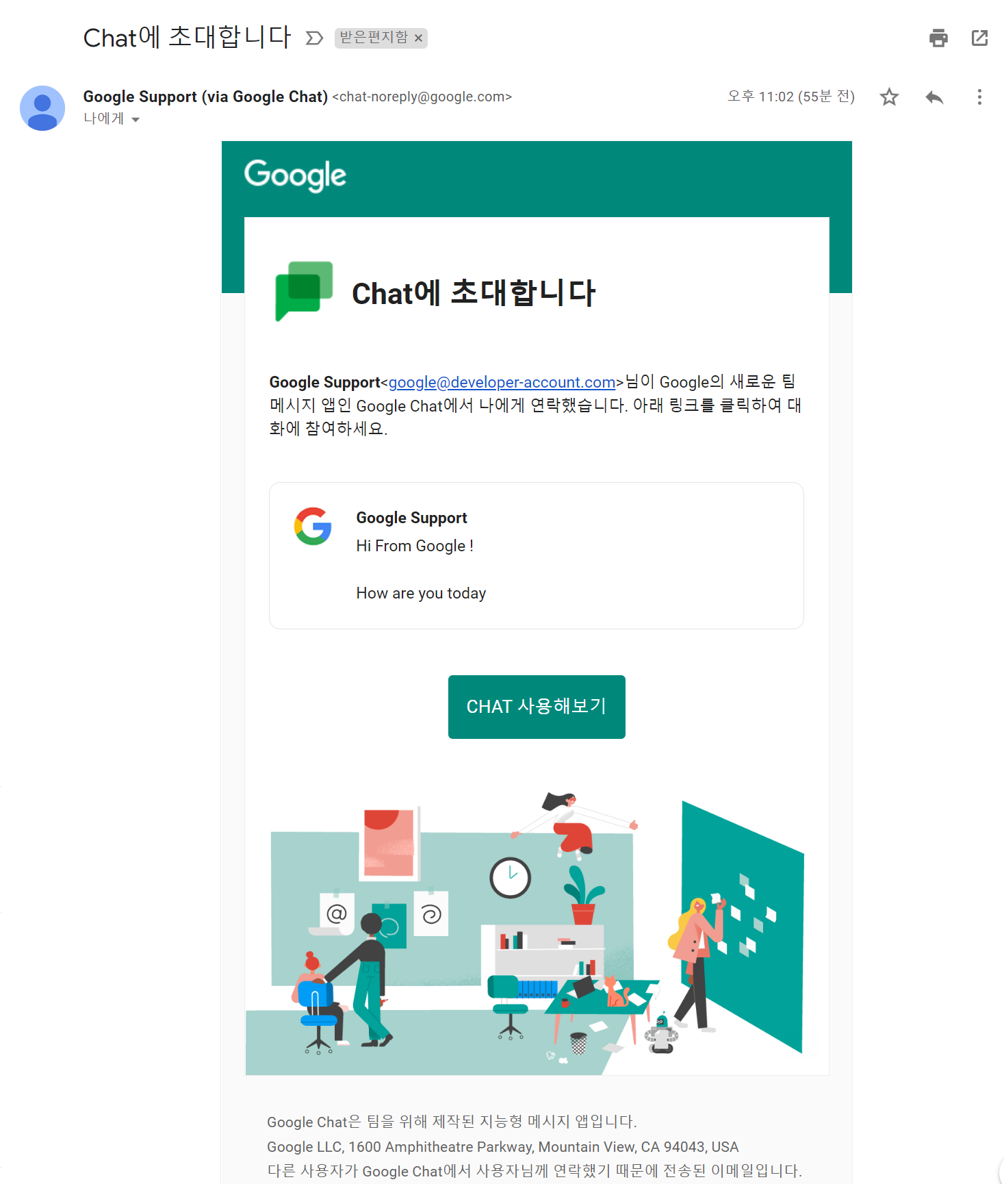 답변을 보냈떠니 Google Chat 초대 메일이 왔다 ㅋㅋㅋ