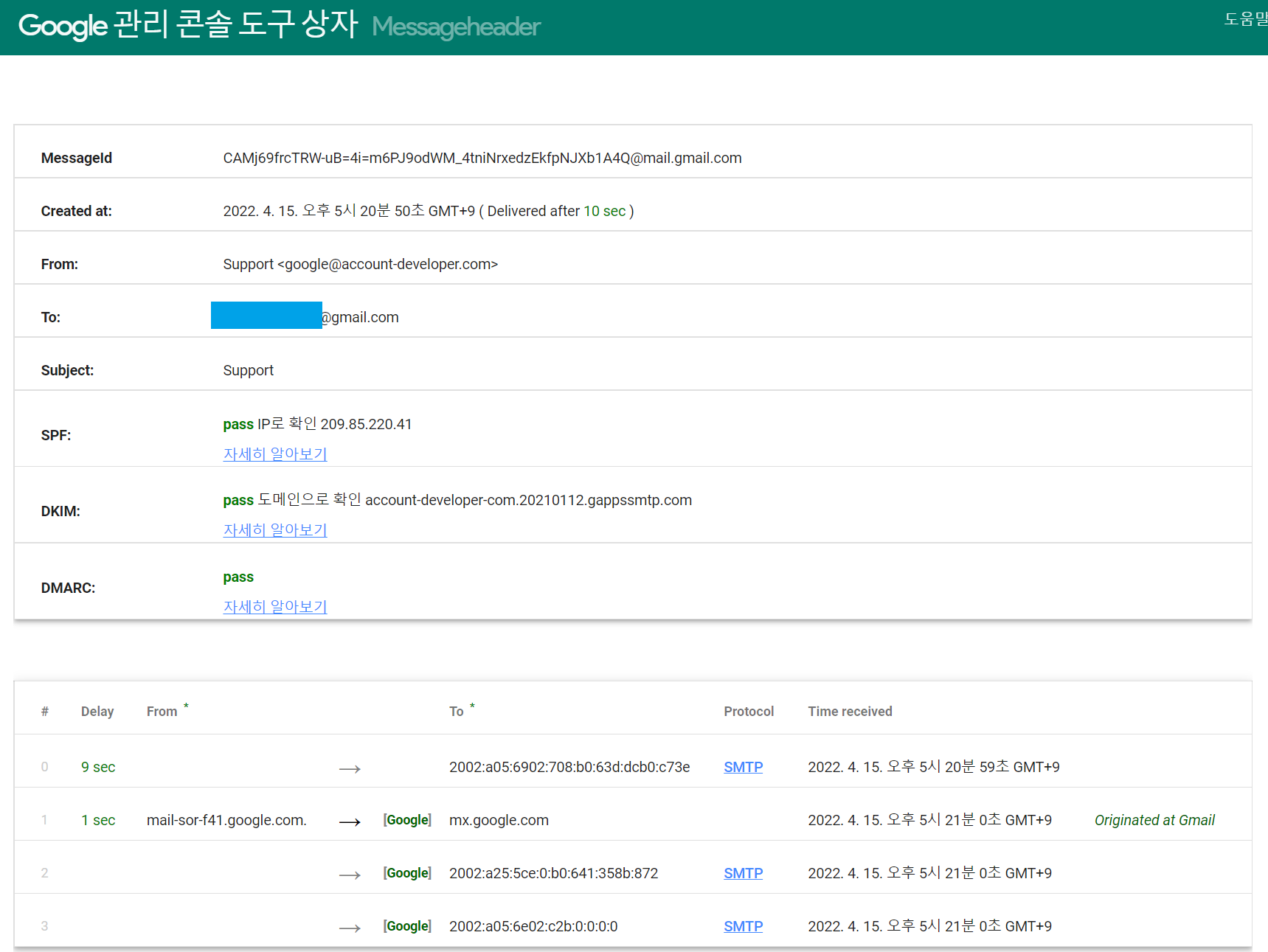 이메일 헤더 분석 도구 (구글 관리 콘솔 도구 상자)