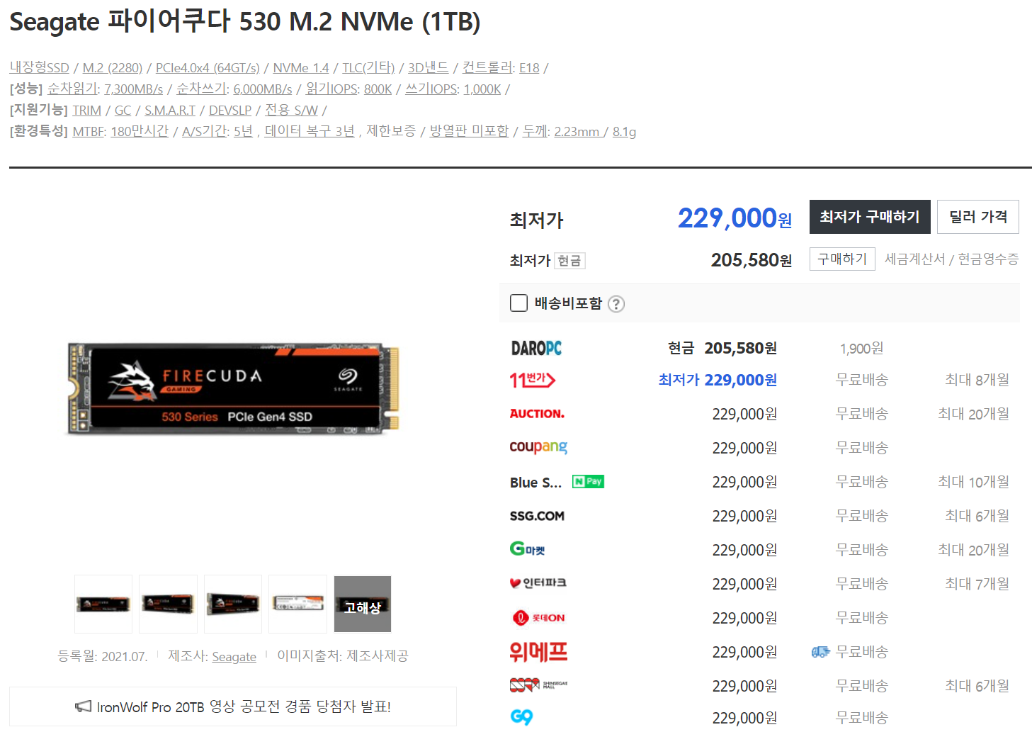 | 12 | NVMe 삼성 980 PRO with Heatsink 1TB | 45,074 |