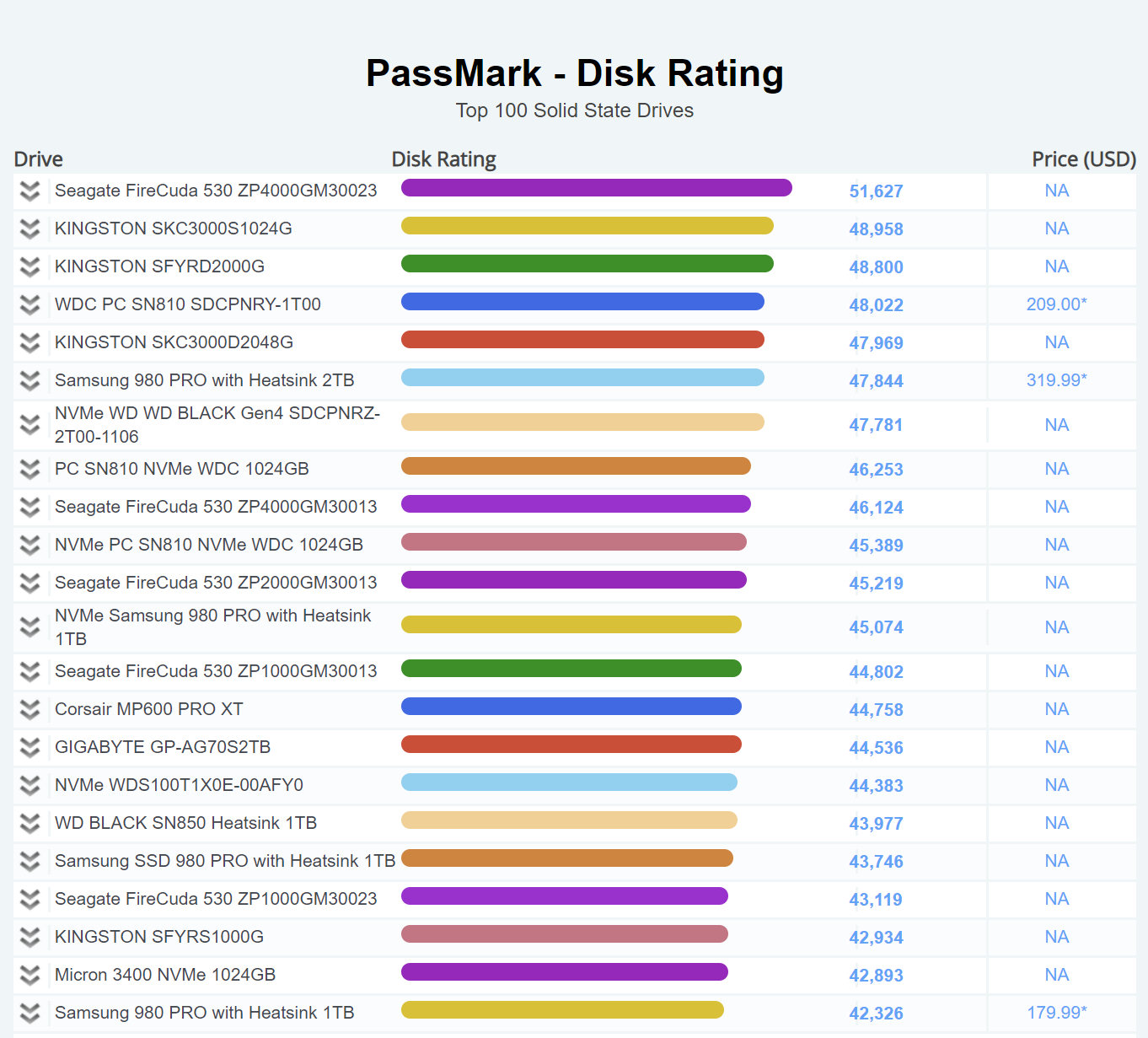 | 13 | Seagate FireCuda 530 ZP1000GM30013 | 44,802 |