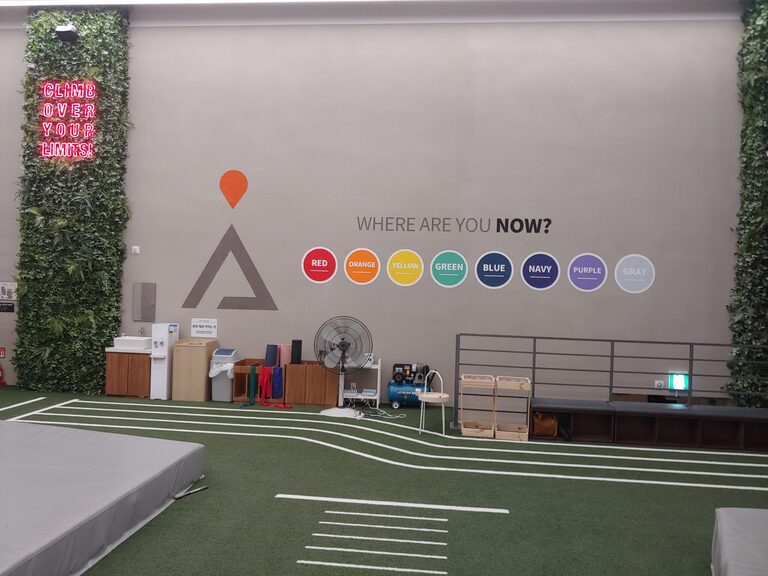 클라이밍 난이도는 색상으로 표기해두고 있는데 가장 쉬운 레드부터 가장 어려운 등급인 그레이까지 구성되어 있다.