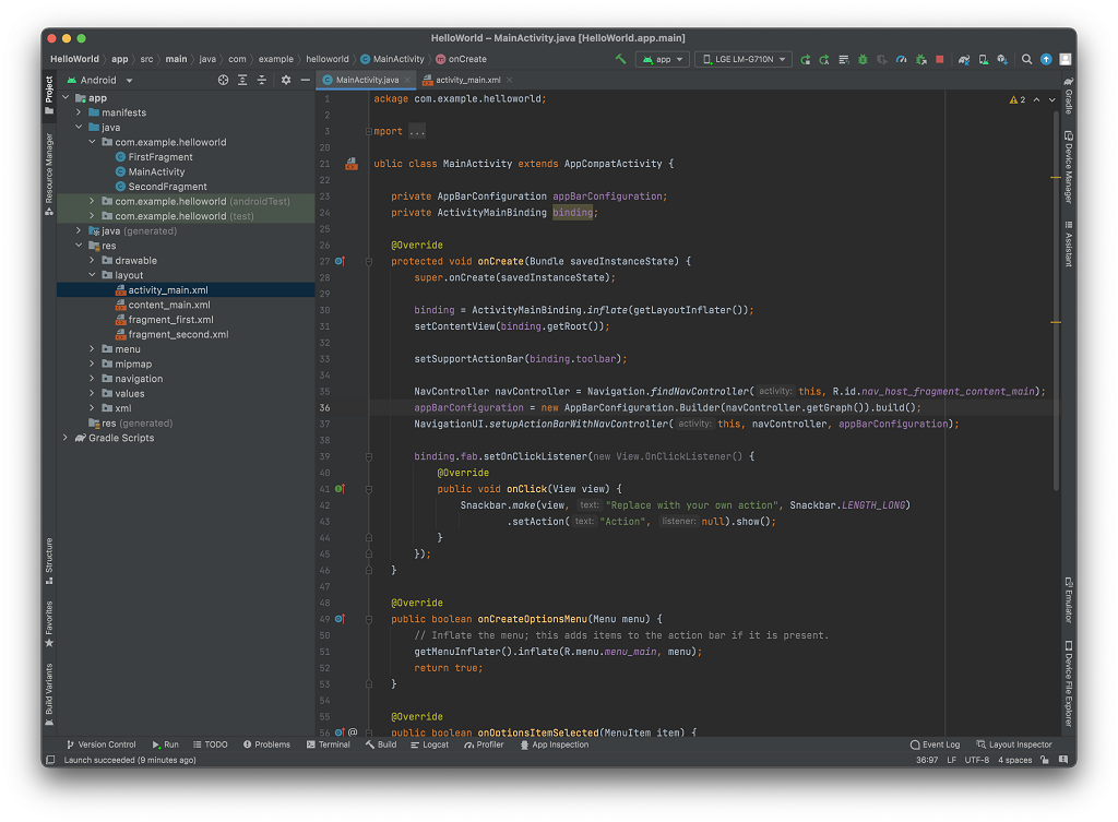 자바(Java)를 따로 설치할 필요도 없다. 안드로이드 스튜디오 설치 후 New Project를 눌러서 HelloWorld 프로젝트를 하나 생성하였다.