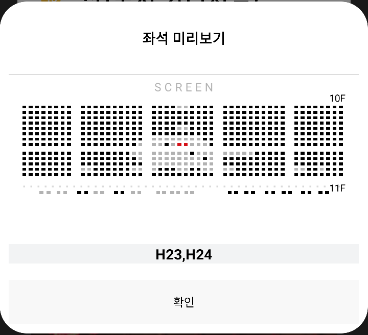 H23 H24 좌석이면 아주 좋은 자리이다.