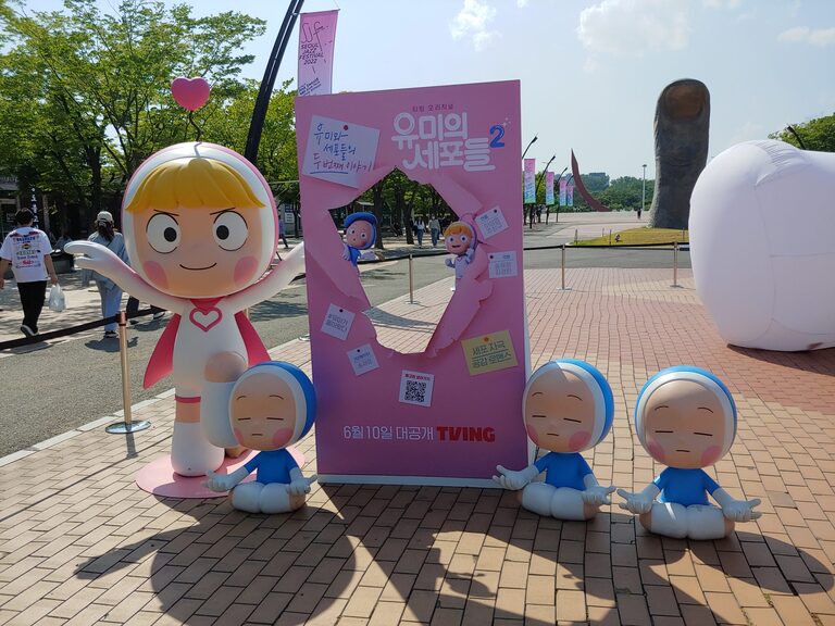 올림픽공원으로 들어서면 드라마 “유미의세포들” 에 나오는