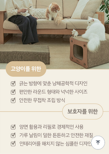 고양이가 발톱으로 긁는 방향과 박스 종이의 결을 반대로 해서 조립하게 되어 있음으로 내구성이 높을 것 같고