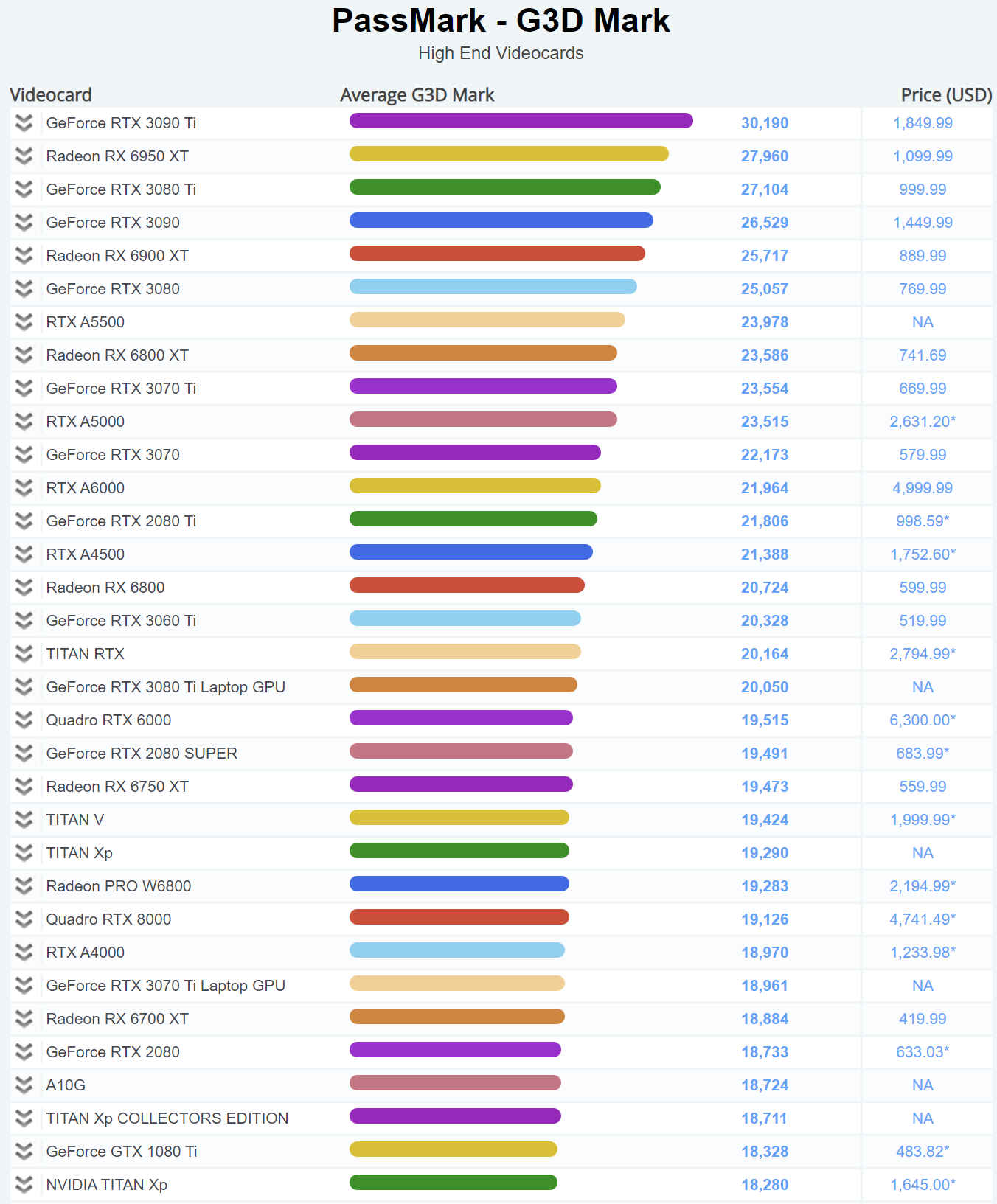 2022년 4월 하이엔드(high-end) 그래픽 카드 벤치마크 성능 속도 순위