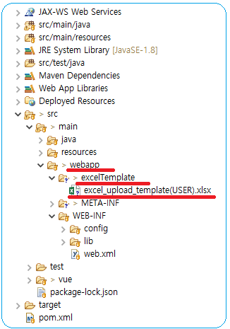 excelTemplate 폴더를 생성해주고 엑셀 템플릿을 추가해주었다.
