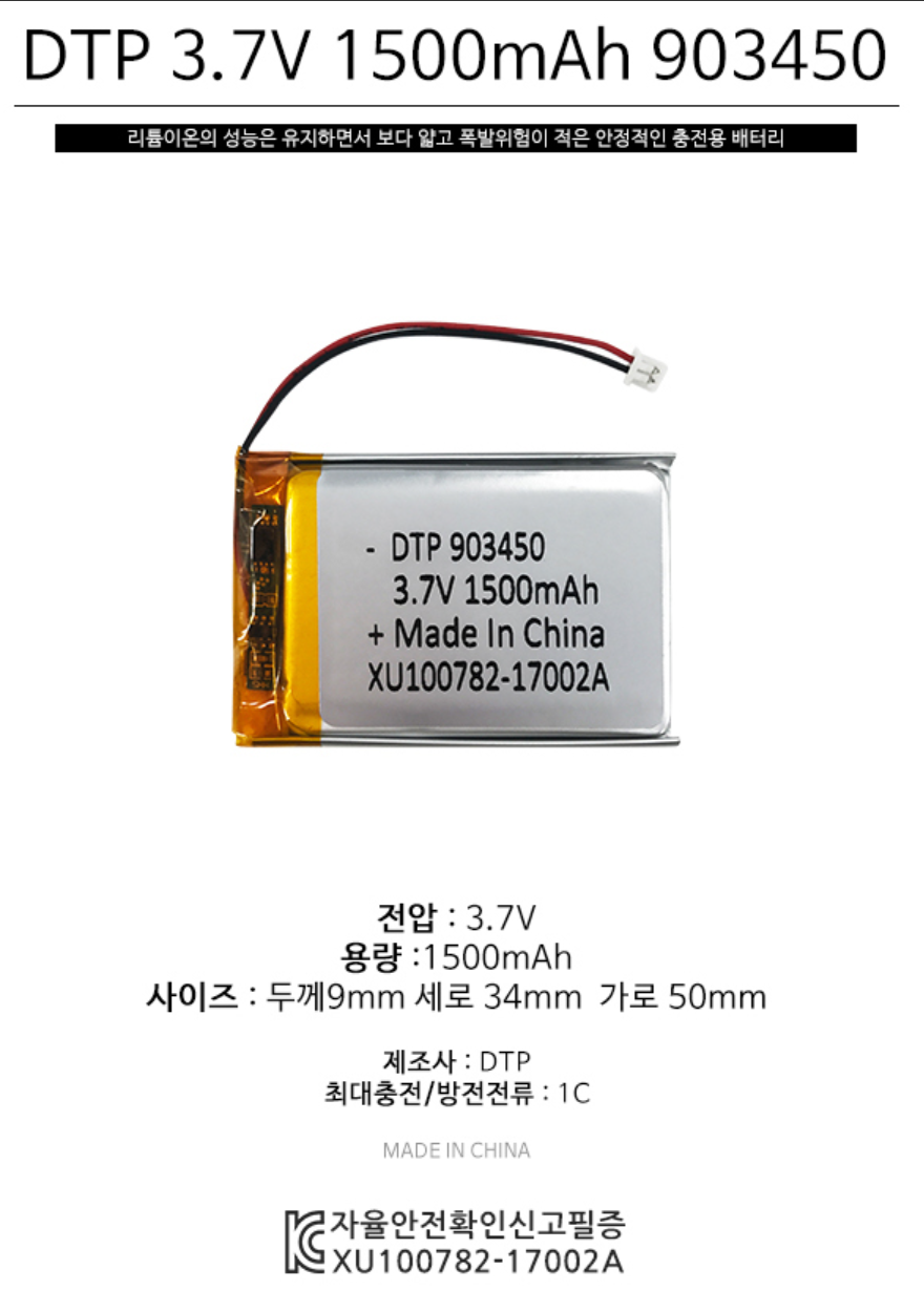 언제 터질지 모른다는 불안감에 “dtp903450 1500mah” 검색하였다.