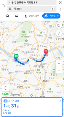 편하게 가기 위해 중간에 한번 따릉이를 반납하고