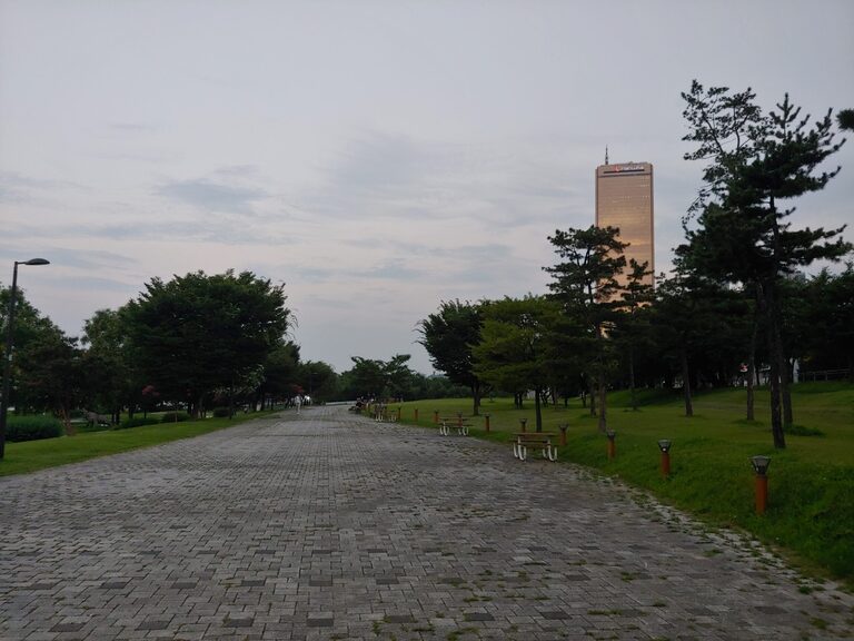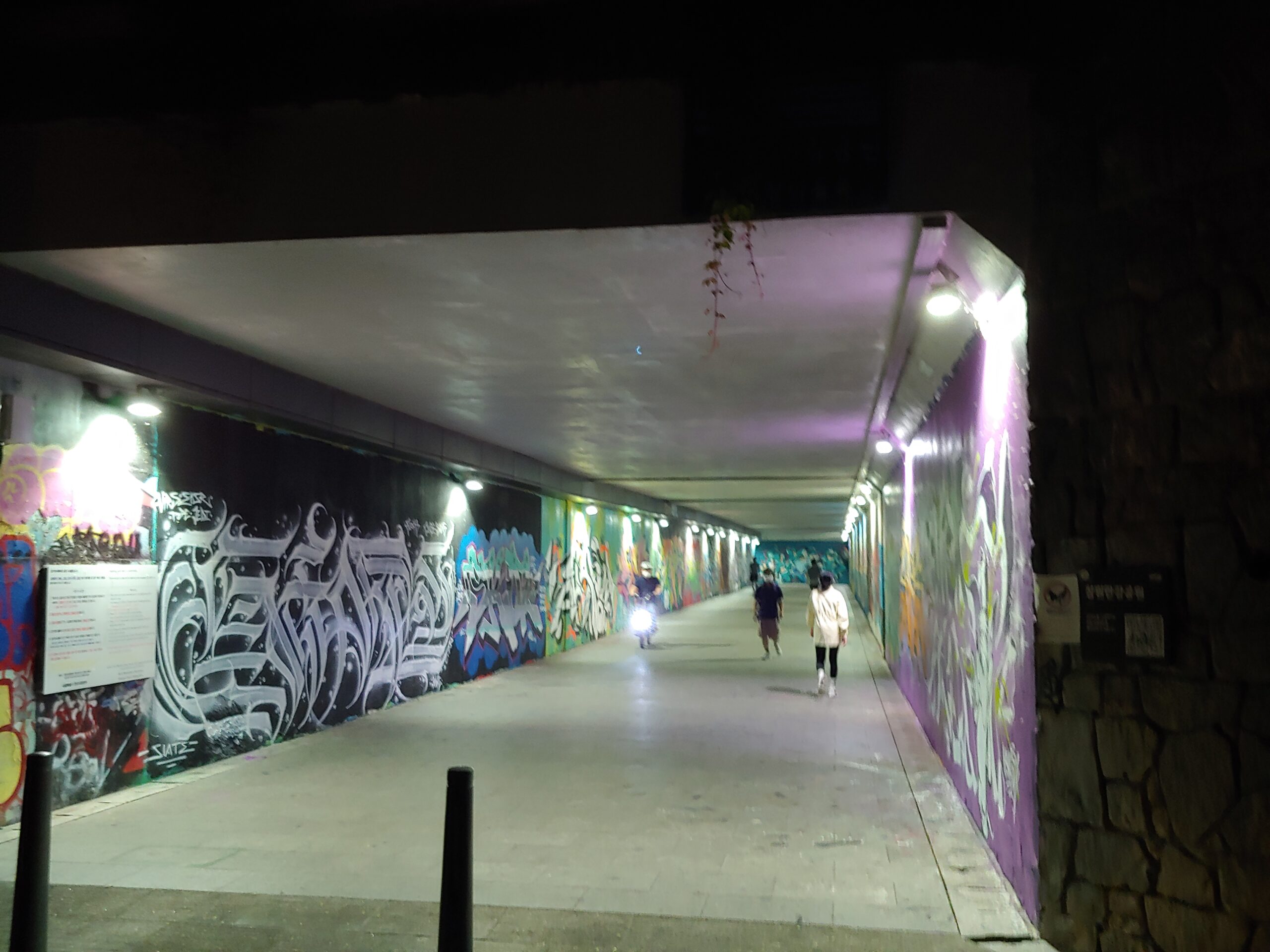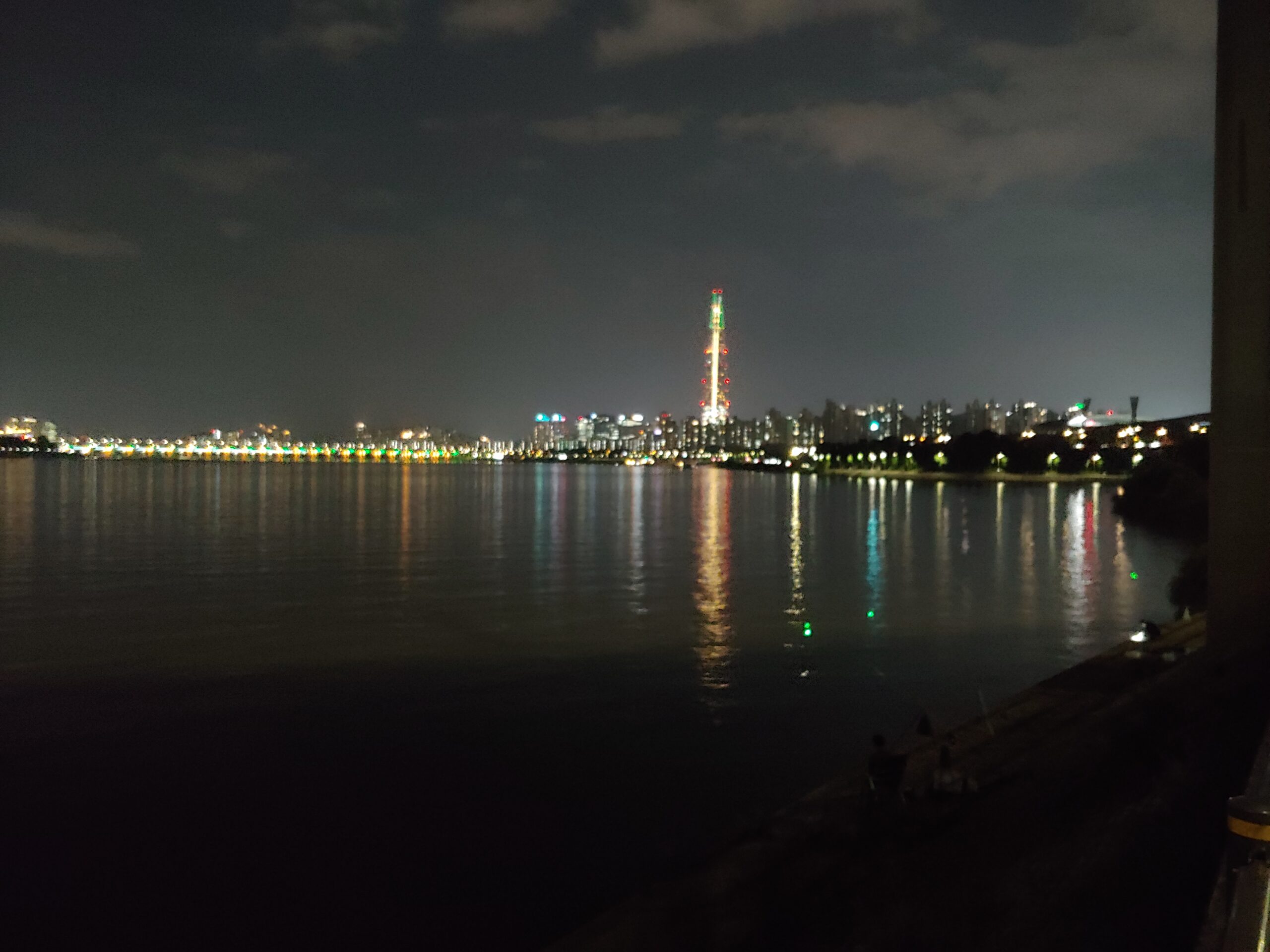 잠실쪽 한강 공원 내 따릉이 자전거길를 따라 가고 있는데 멀리서 자동차 불빛이 보였다.