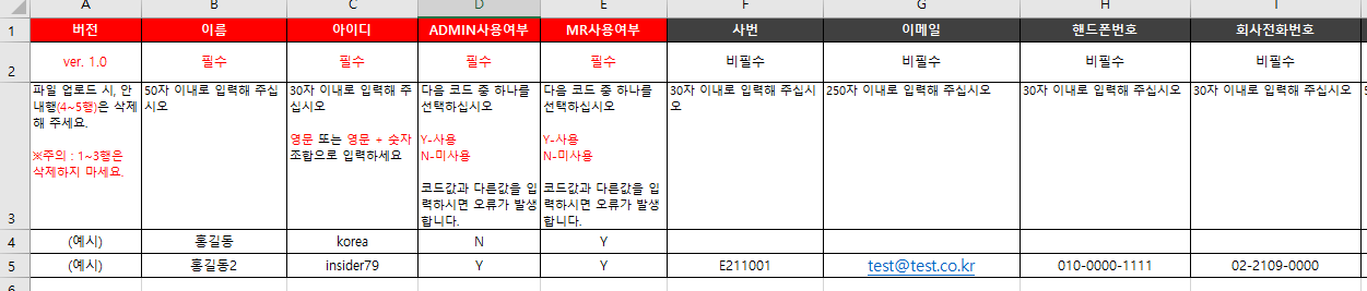 엑셀 파일 업로드 양식 체크 및 버전 체크 샘플 코드
