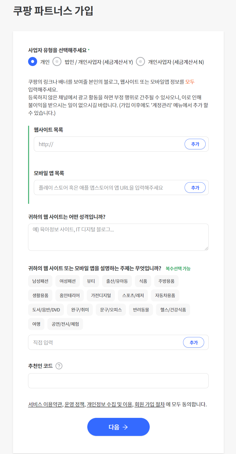 티스토리 쿠팡파트너스 가입 방법 및 광고배너 달기
