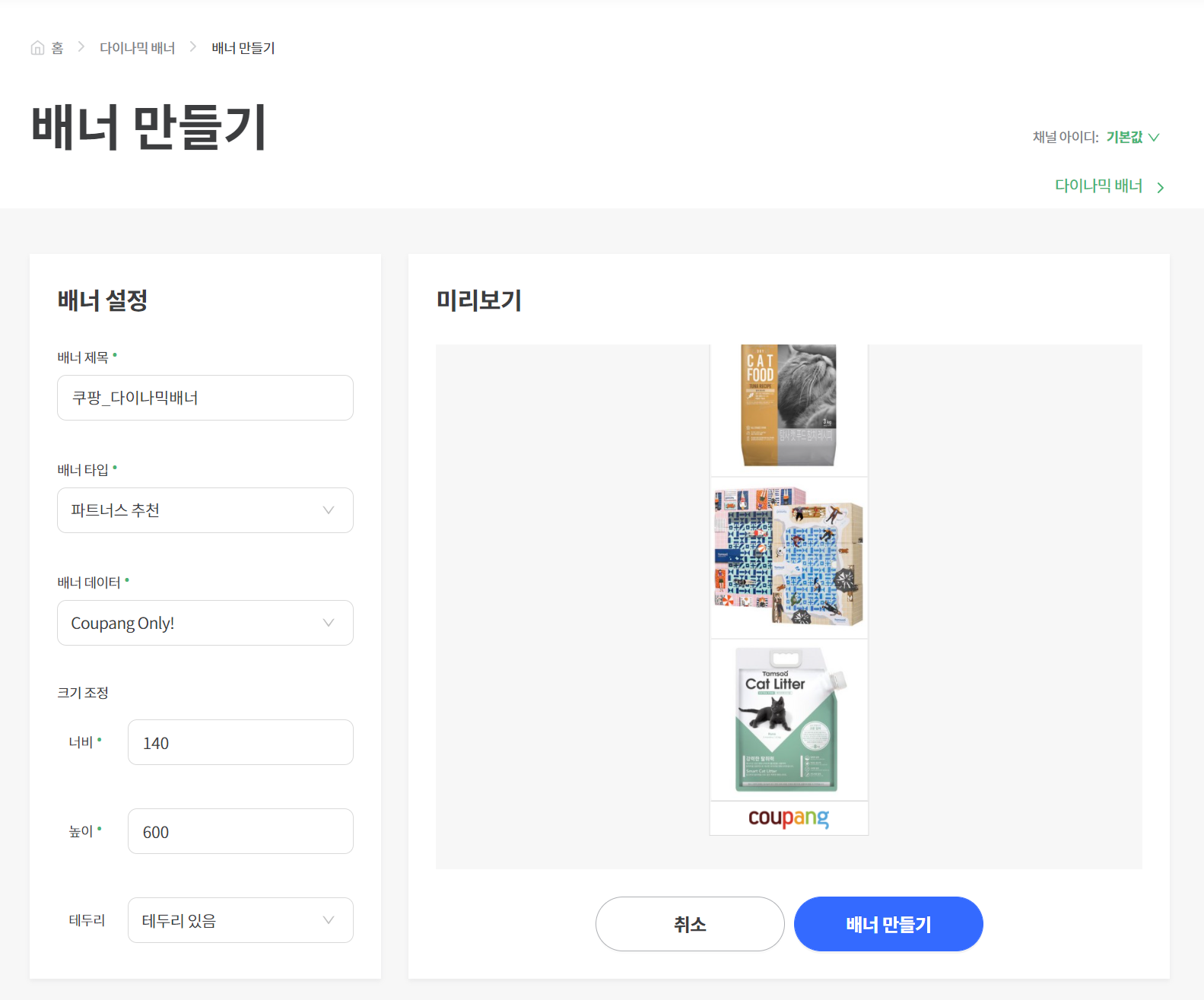 그 다음으로 배너 생성 버튼을 클릭합니다.