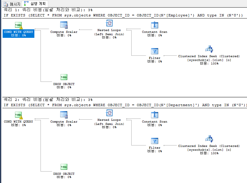 쿼리 결과는 동일하지만 실행계획은 약간 다르다.