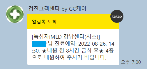 검진예약 할 때 아래와같은 카톡 메세지를 받았기 때문에