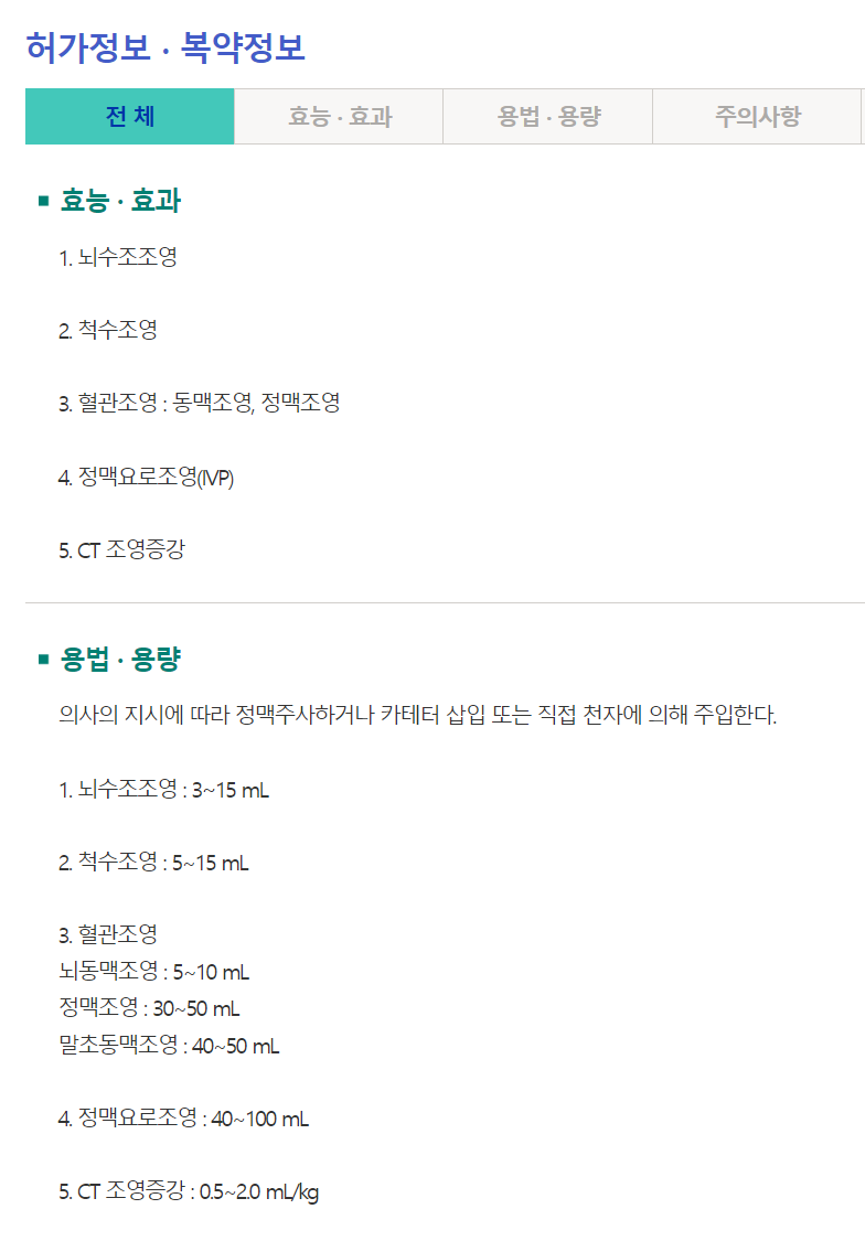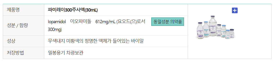 조영제로 사용되는 파미레이300주사액(30mL) 에 대한 정보를 찾아보았다.