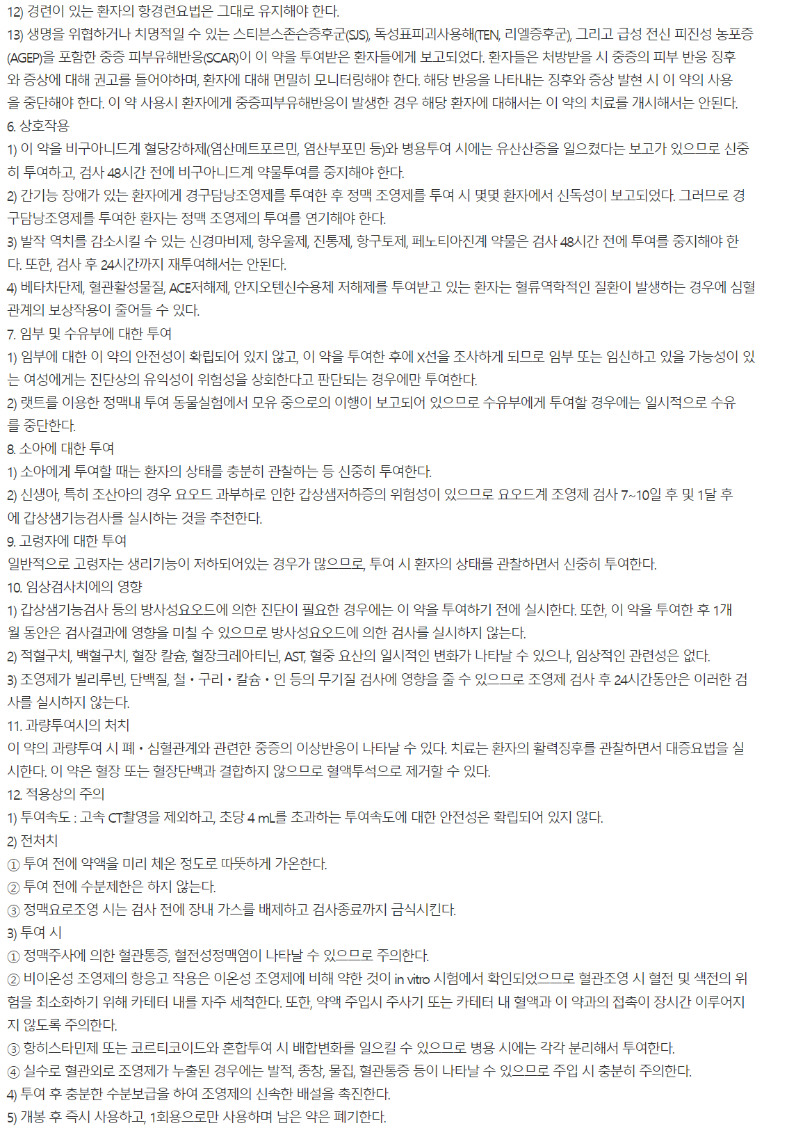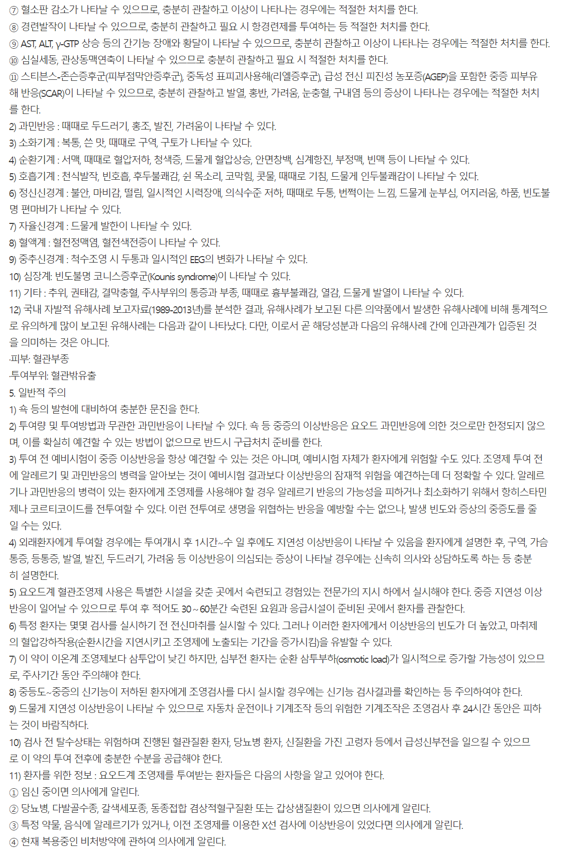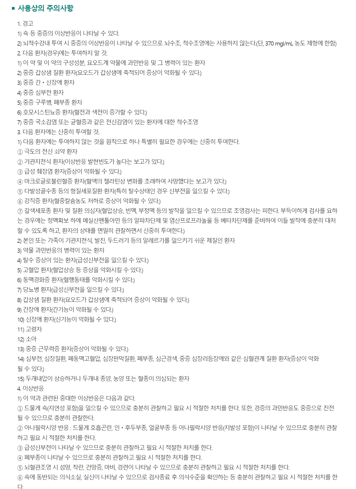 심각한 부작용이 발생할 수 있습니다.과거 조영제 부작용이 있었다거나