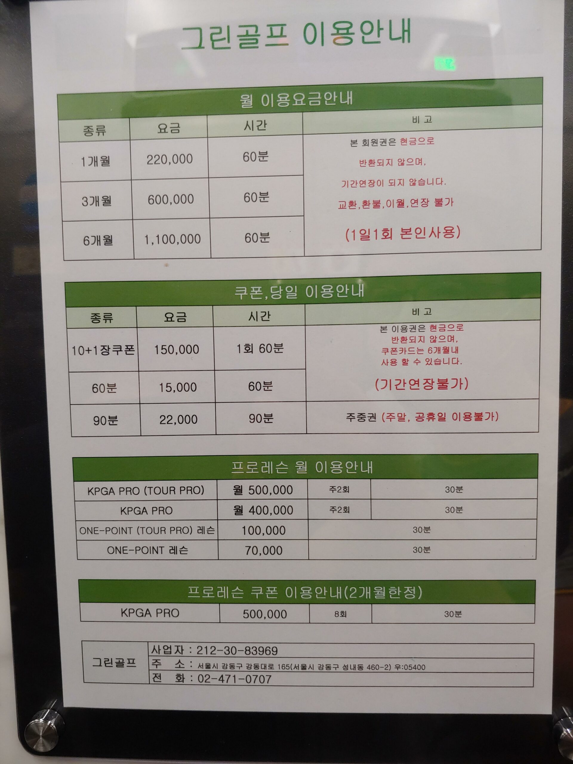그린골프(서울 강동구 강동대로 165) 연습장은