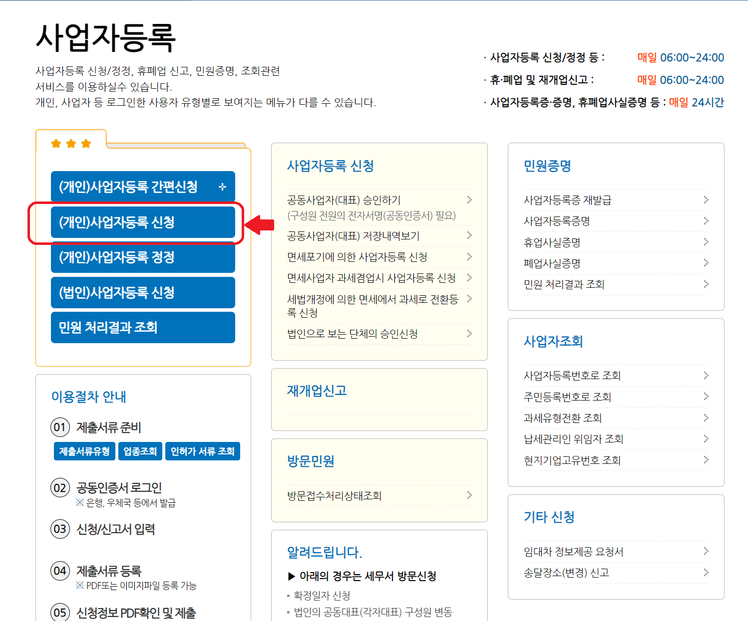국세청홈택스 사이트를 이용하여 개인사업자 등록하는 방법