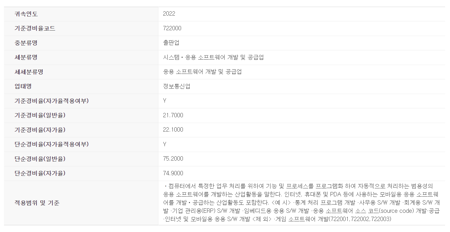 참고사항으로 업종코드별 기준(단순) 경비율 조회는 아래 링크를 클릭하여 조회해보세요.