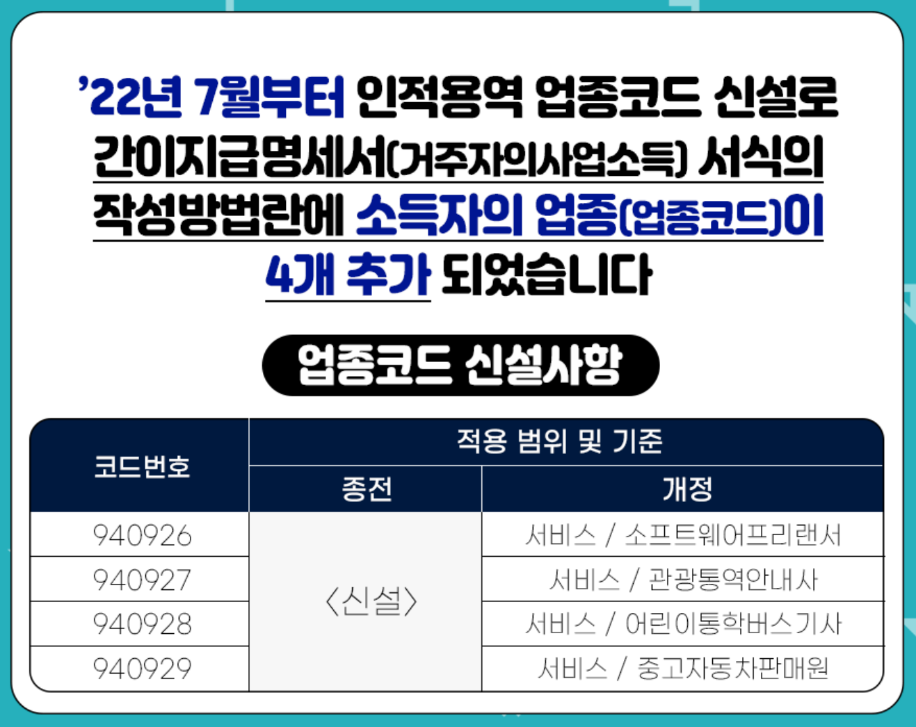 만약 앱개발자라면? 940926 업종코드가 2022년 7월에 추가되었으니 참고해보세요.