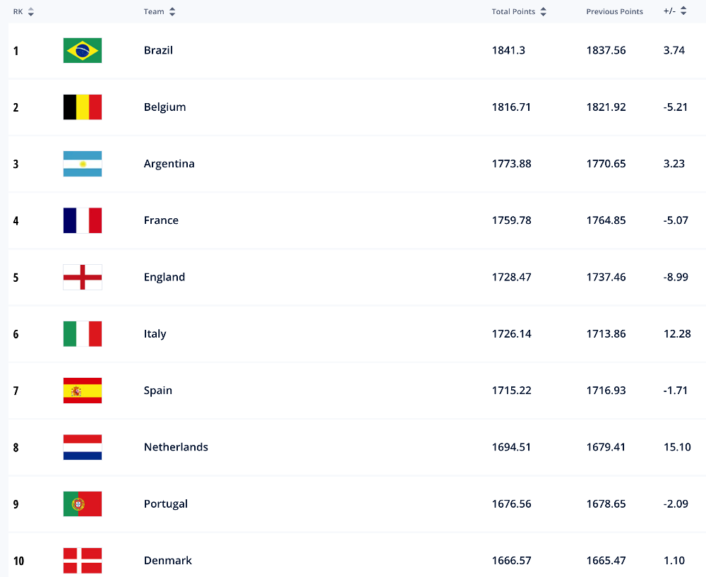 2022년 피파(FIFA) 랭킹 순위 알아보기(순위표) : 한국 피파랭킹 순위