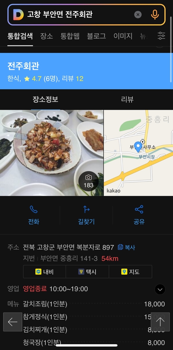 먼저 도착한 친구가 미리 주문한 참게정식과 청국장을 맛있게 먹고