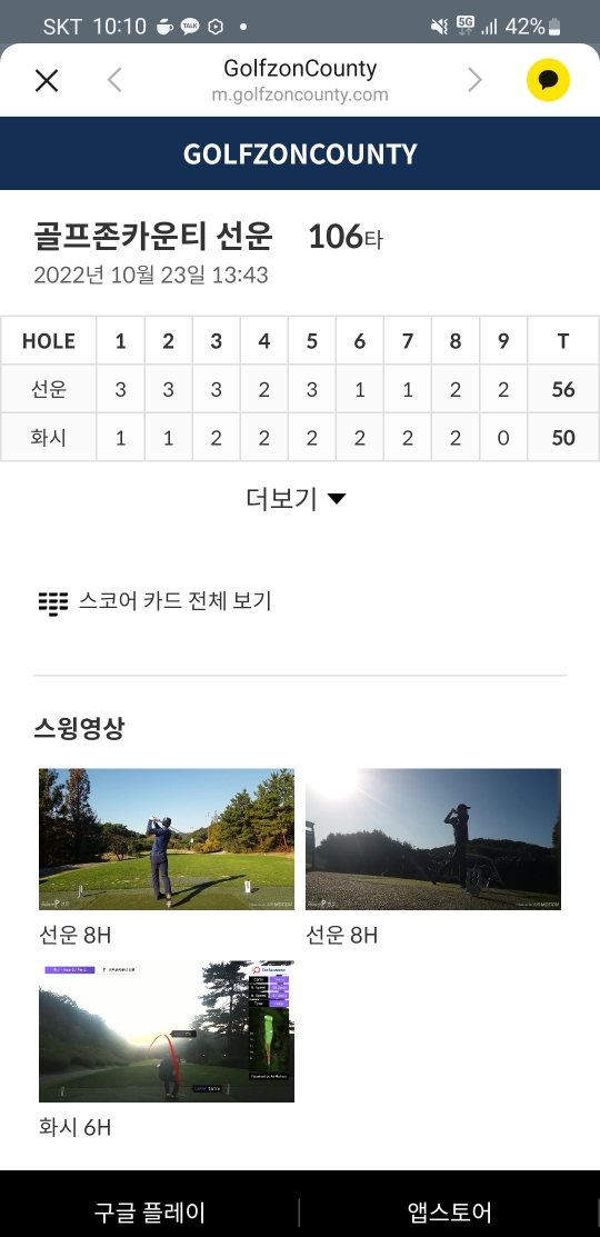 오늘의 내 스코어는 106타 ㅋㅋㅋ