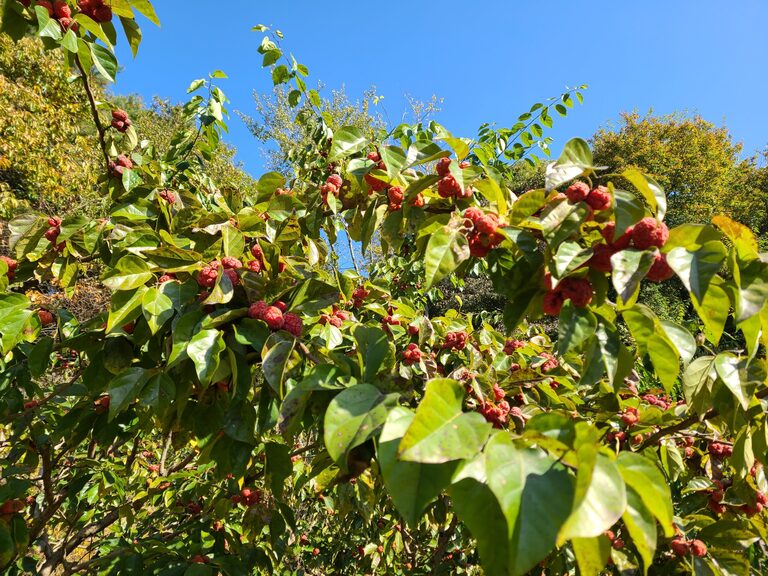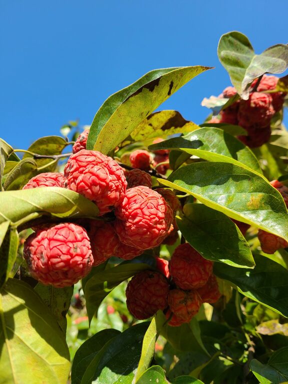 꾸지뽕은 여름철에 열매를 맺는 소나무과의 식물로, 열매는 빨갛고 둥글며 산뜻한 향기를 가지고 있습니다. 꾸지뽕은 맛이 달콤하고 상큼해서 과일로 먹을 수도 있지만, 건강에 좋은 성분이 많아 건강식품으로도 사용됩니다.