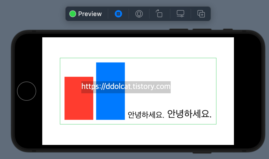 <HStack(alignment: .top, spacing: 0) 프리뷰 결과>