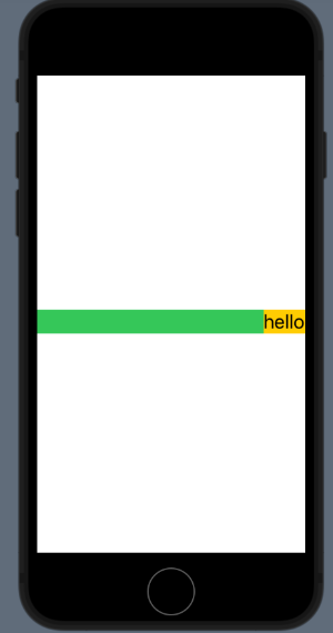 “hello” 텍스트 크기 영역을 제외한 왼쪽의 나머지 공간을 모두 차지하게됨, Spacer의 배경색 무시됨