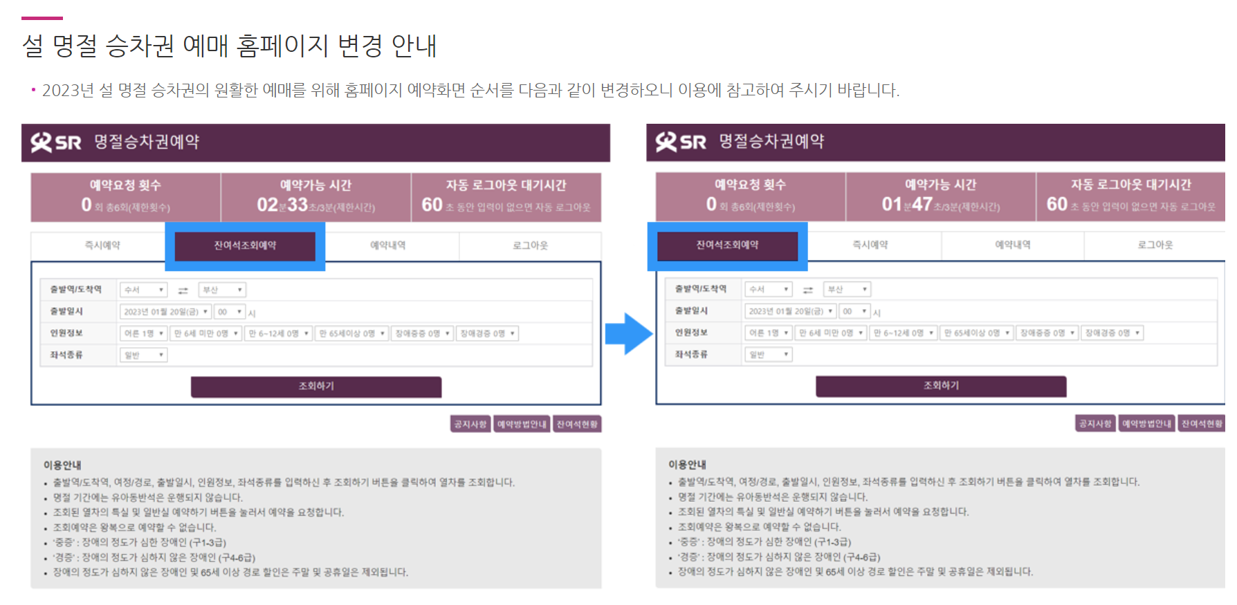 공지사항 < 고객안내 < 승차권 예약/발매 – 국민철도 SR