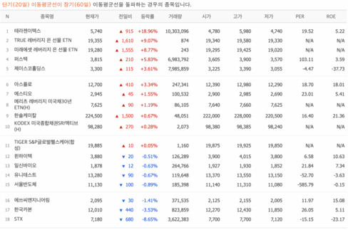 테라젠이텍스,퍼스텍,제이스코홀딩스,아스플로,에스티오,한솔케미칼,윈하이텍,일신바이오,유니테스트,서울반도체,에쓰씨엔지니어링,한국카본,STX 주식은 단기(20일) 이동평균선이 장기(60일) 이동평균선을 돌파하는 경우의 종목입니다. 골든크로스가 발생 이유가 기업 실적이 포함된 것인지 아닌지는 알 수 없습니다.