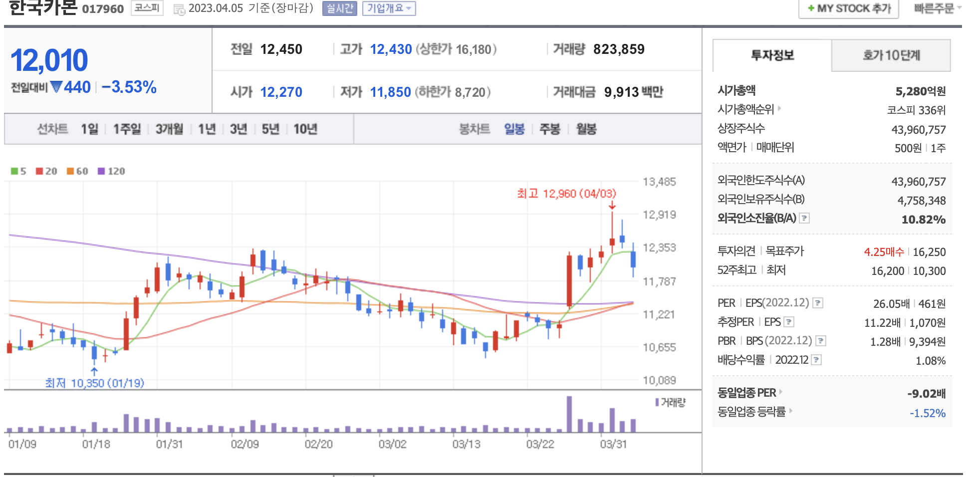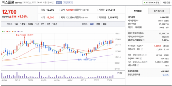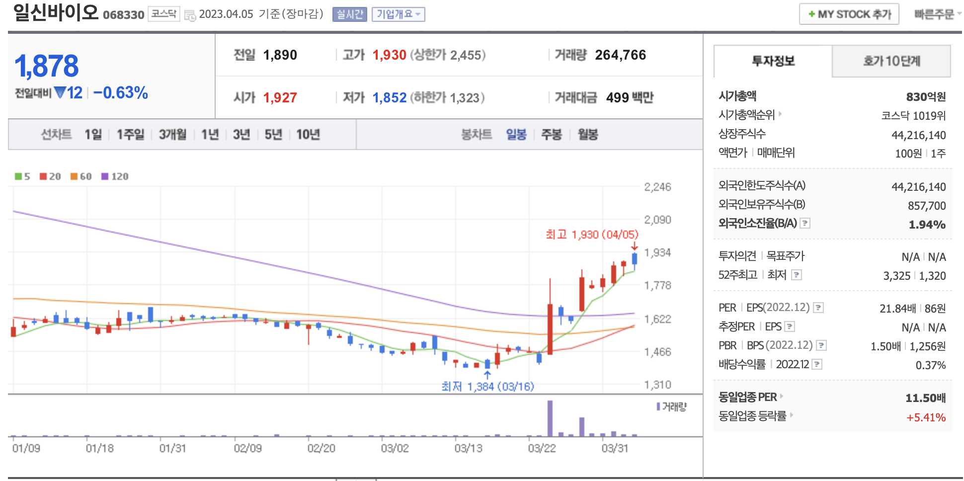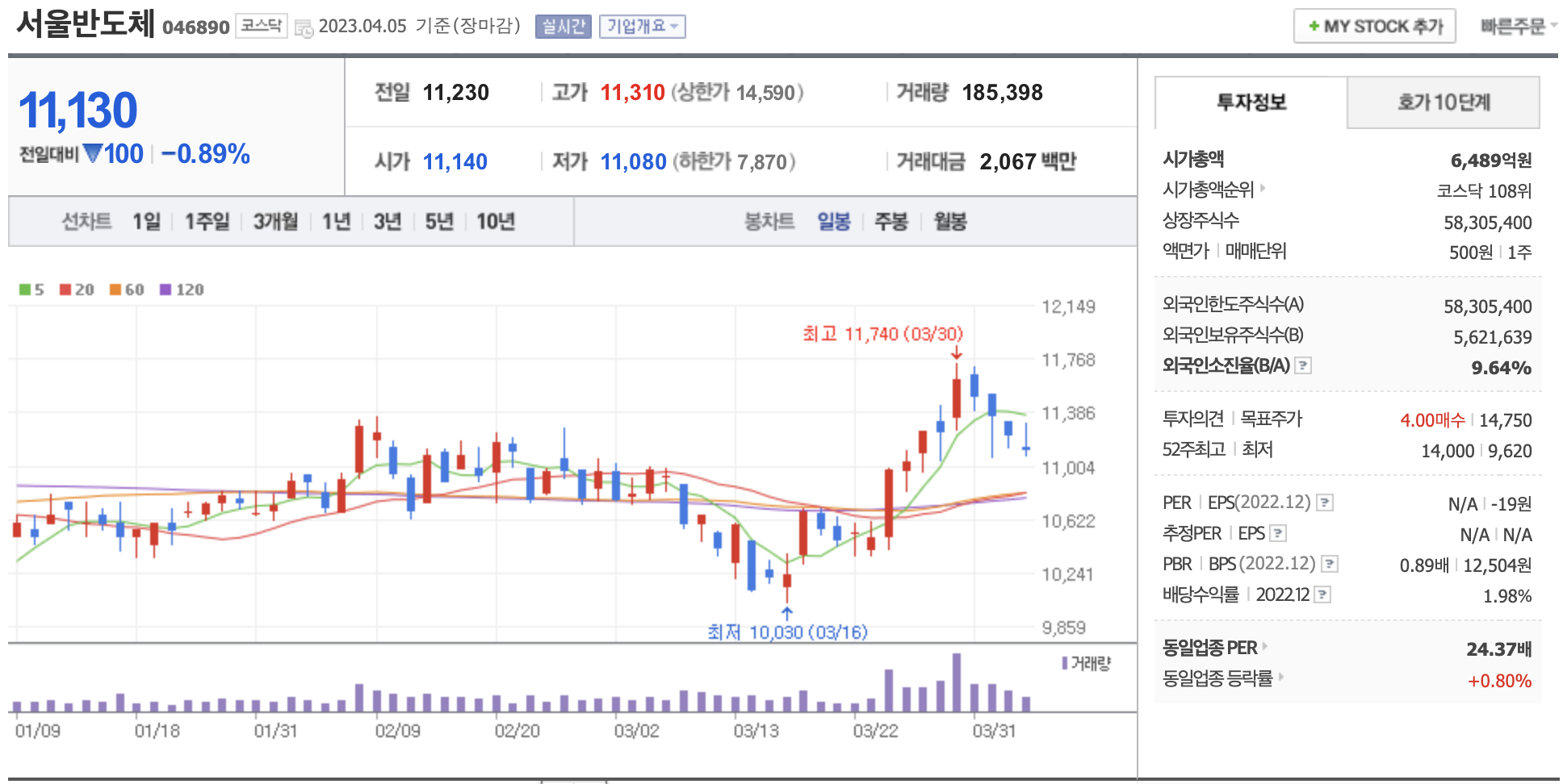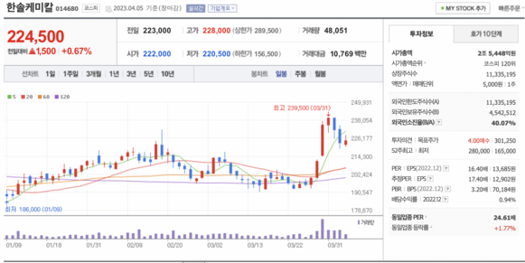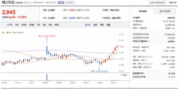 시가총액, 시가총액 순위, 상장주식수, 액면가, 매매단위, 외국인한도주식수, 외국인소진율, 투자의견, 목표주가, 52주 최고, 52주 최저, PER, EPS, PBR, BPS, 배당수익률, 동일업종 PER, 동일업종 등략률 등의 정보를 확인하세요.