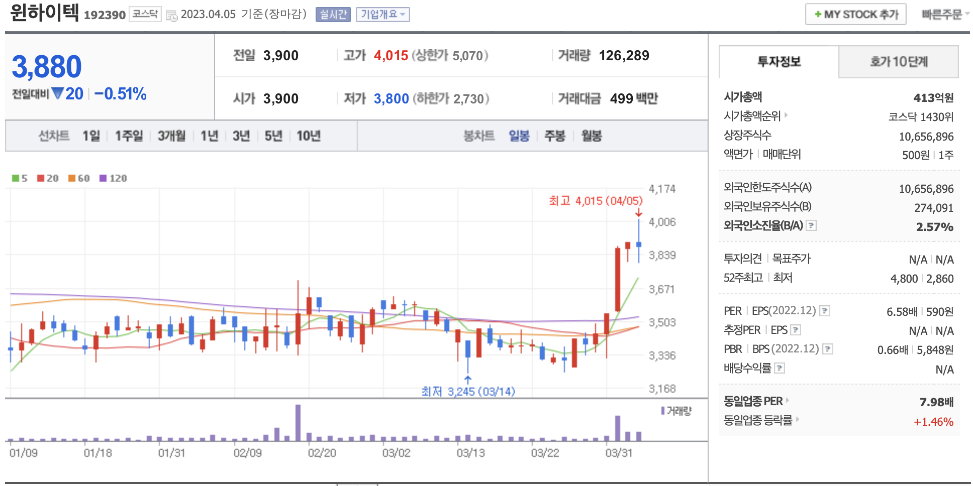 골든크로스가 발생한 종목의 일봉차트