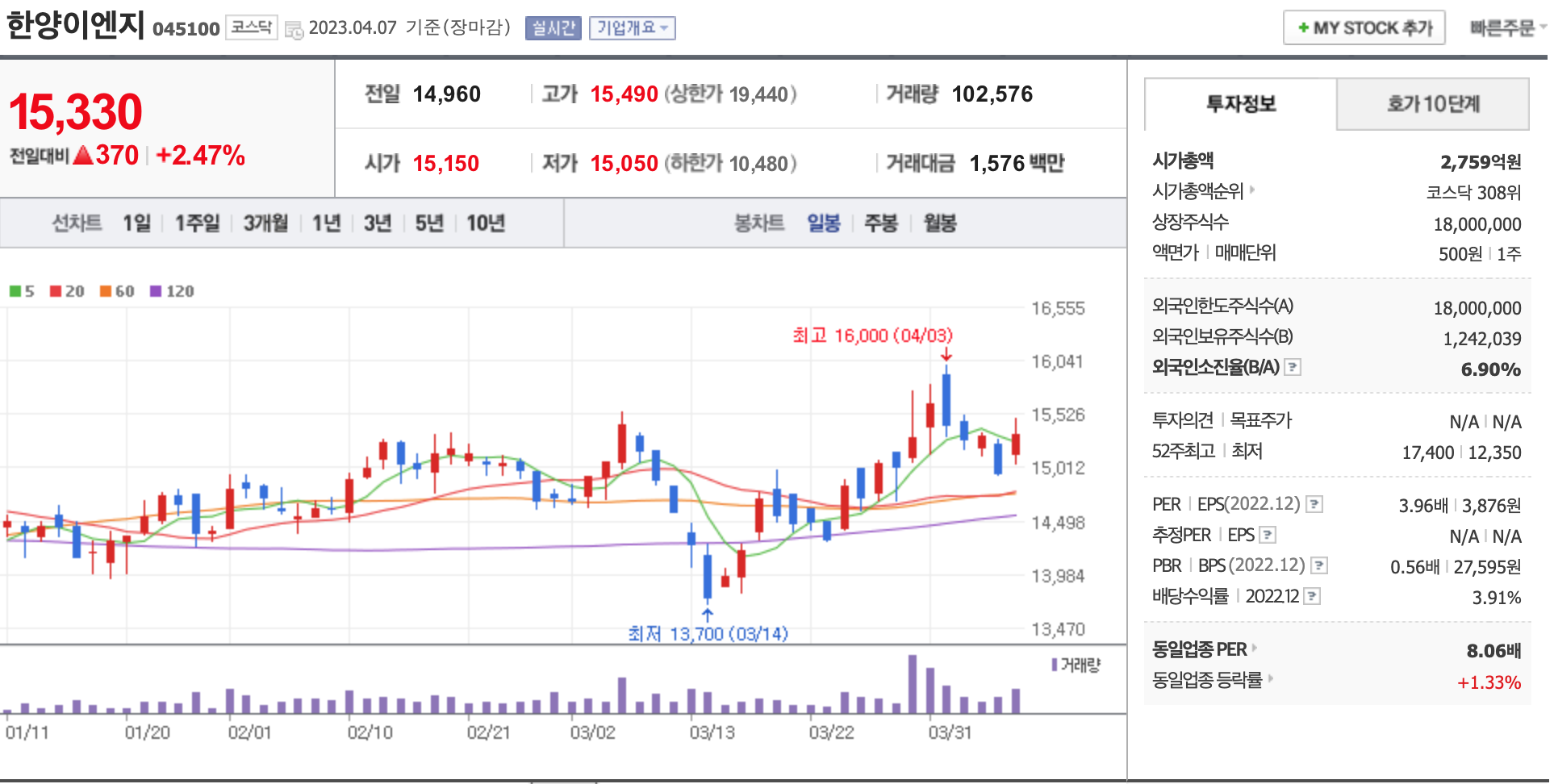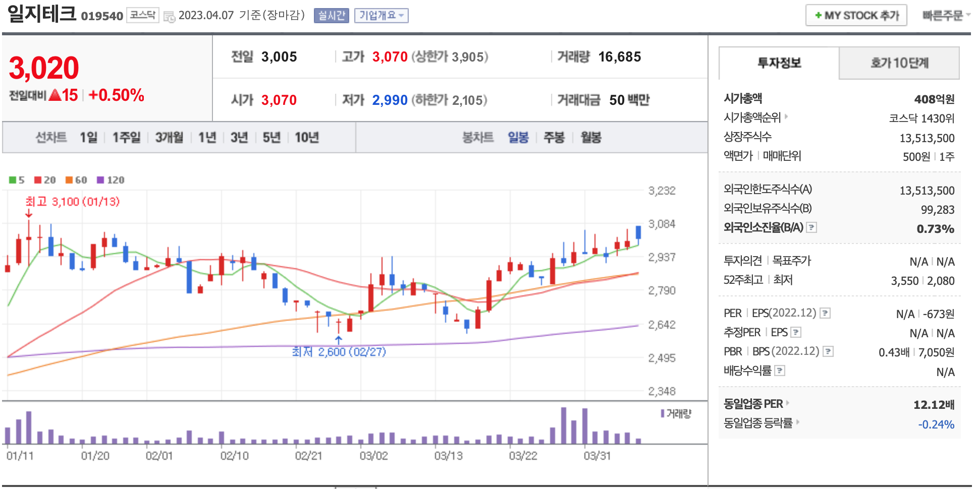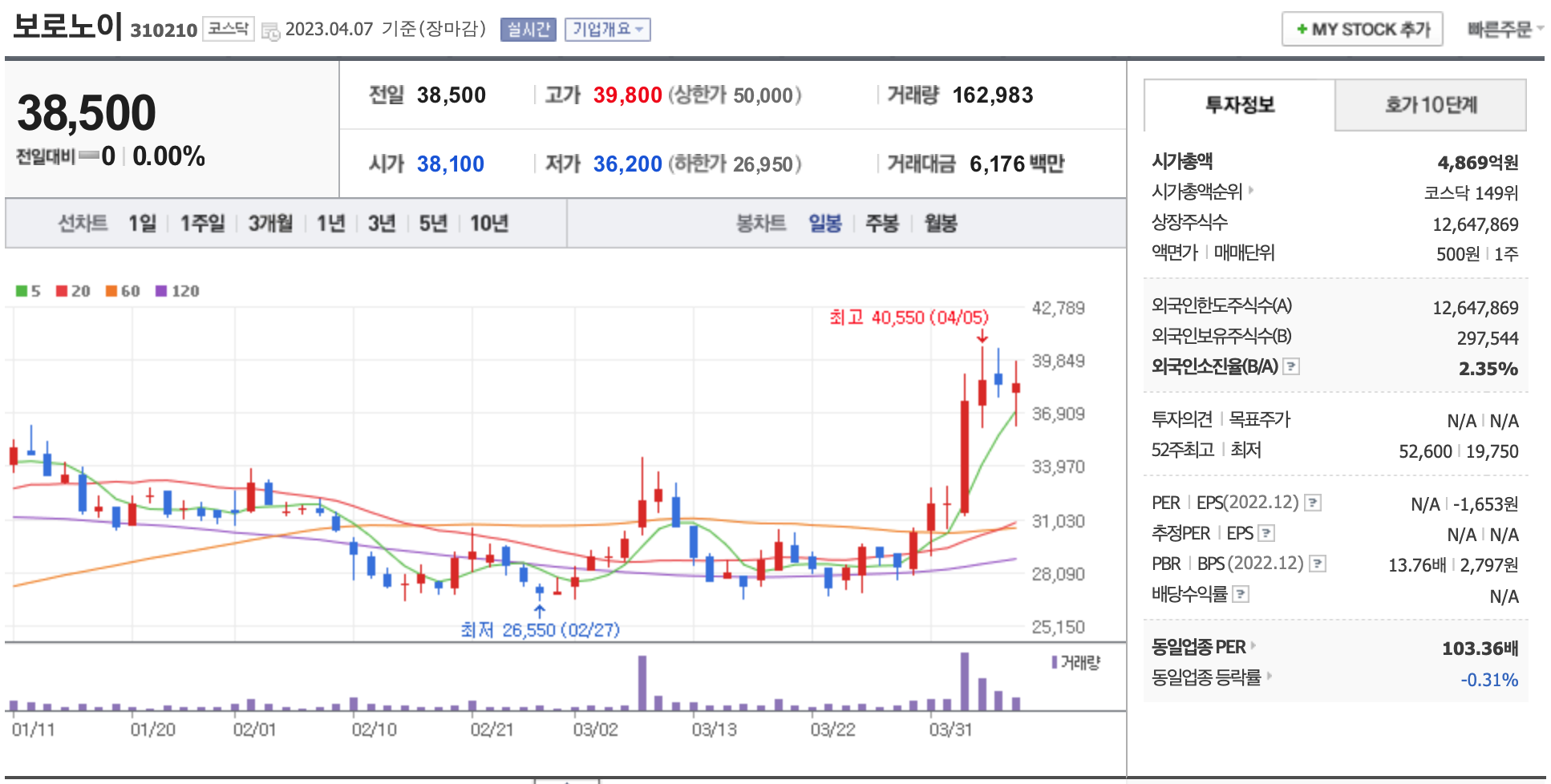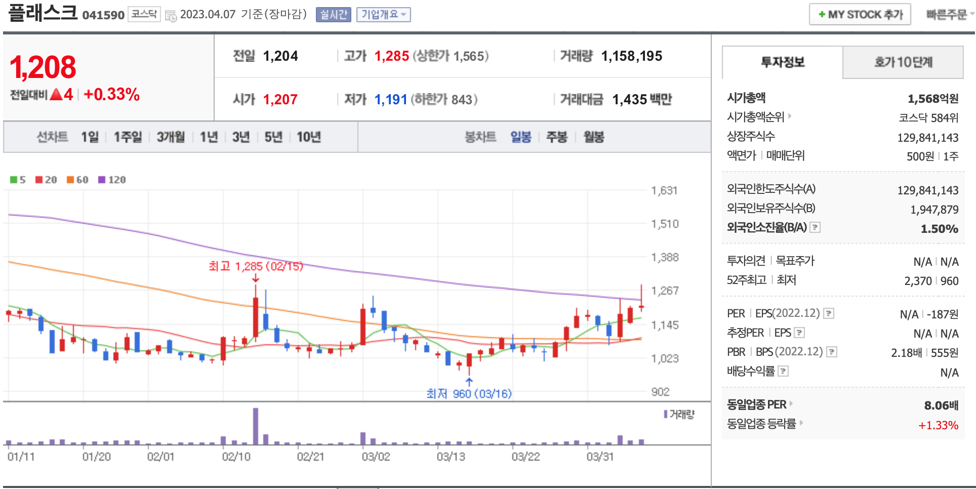 시가총액, 시가총액 순위, 상장주식수, 액면가, 매매단위, 외국인한도주식수, 외국인소진율, 투자의견, 목표주가, 52주 최고, 52주 최저, PER, EPS, PBR, BPS, 배당수익률, 동일업종 PER, 동일업종 등략률 등의 정보를 확인하세요.