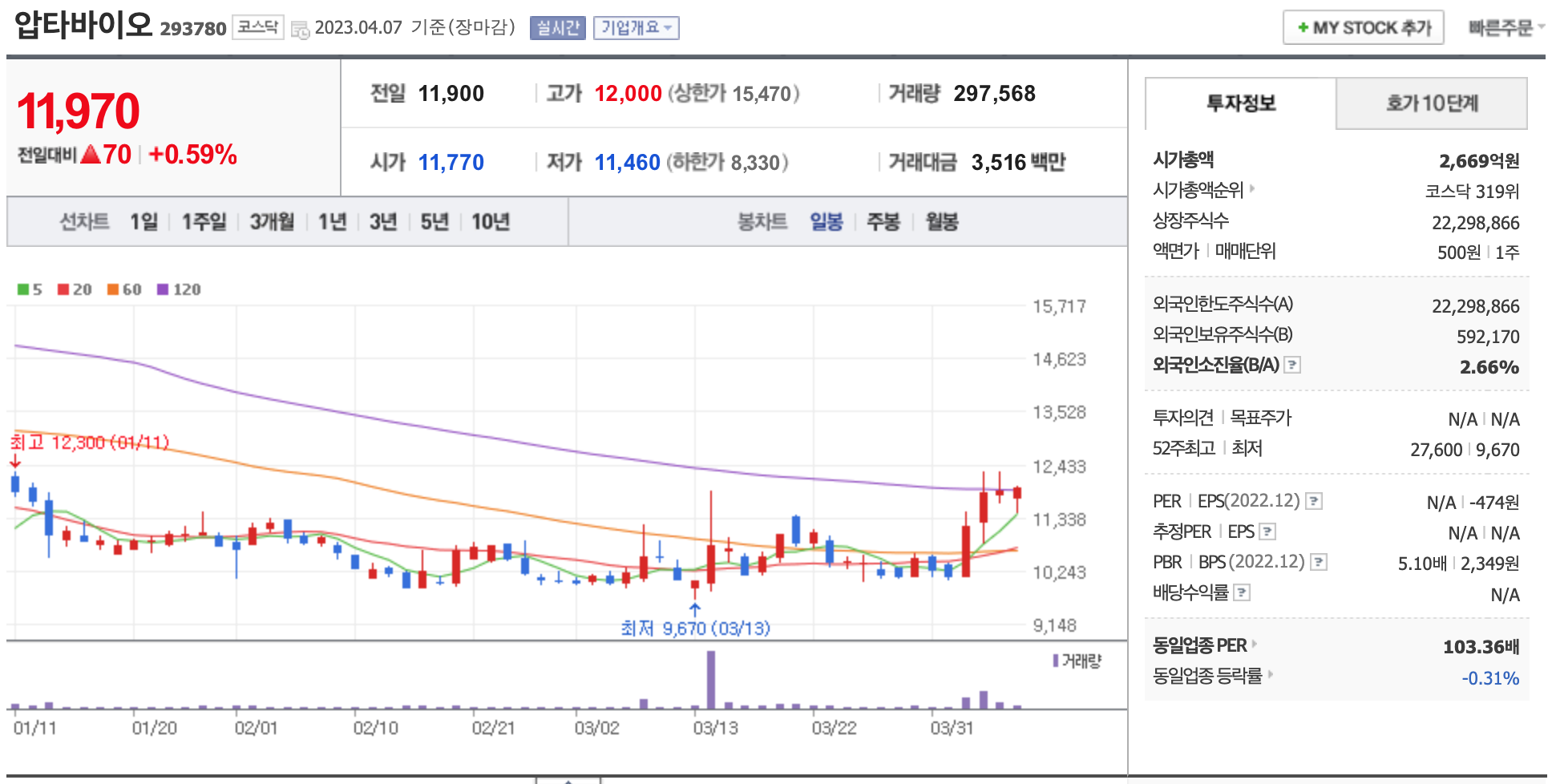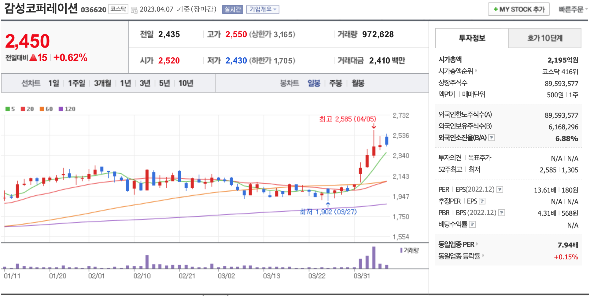다음 종목들은 2023년 4월 4일 장종료 기준으로 단기(20일) 이동평균선이 장기(60일) 이동평균선을 돌파하는 경우의 종목입니다.