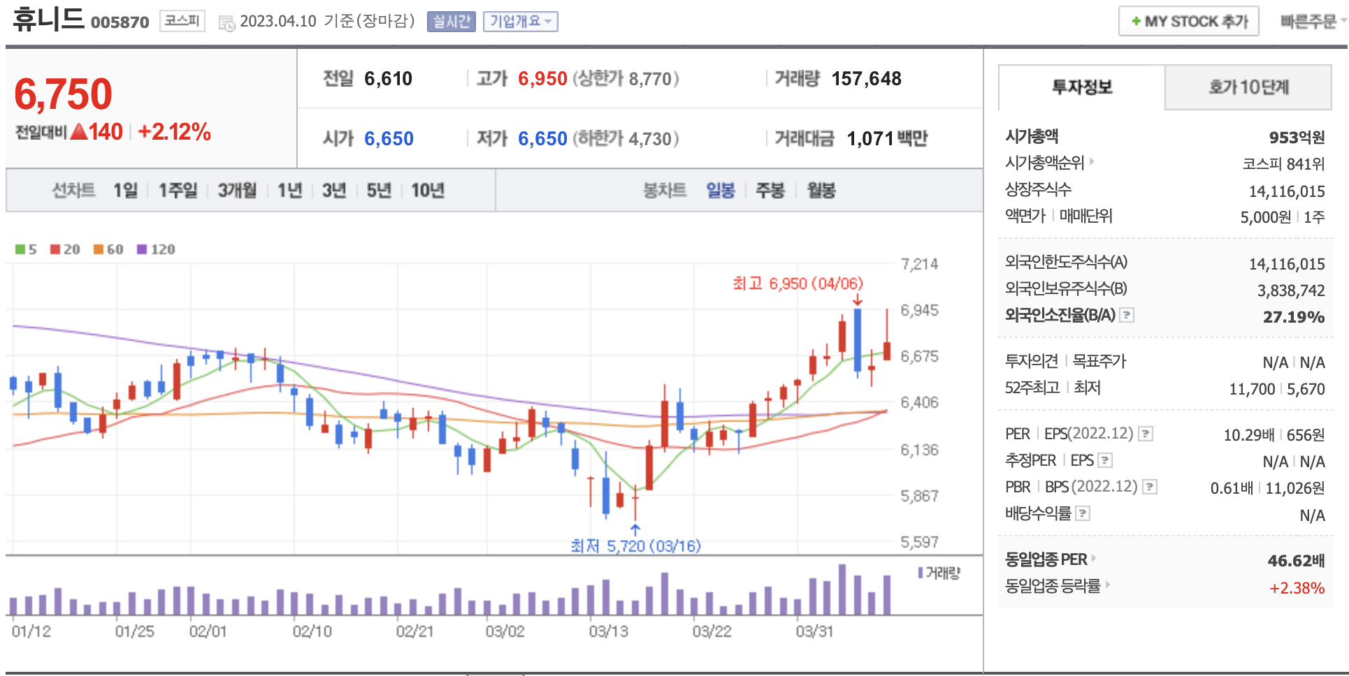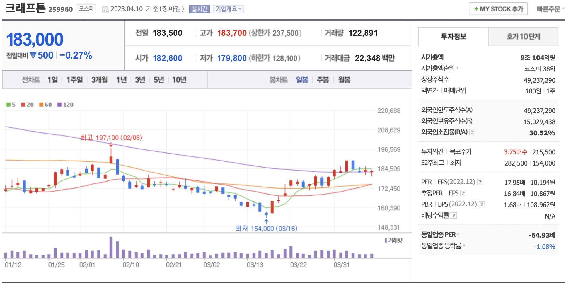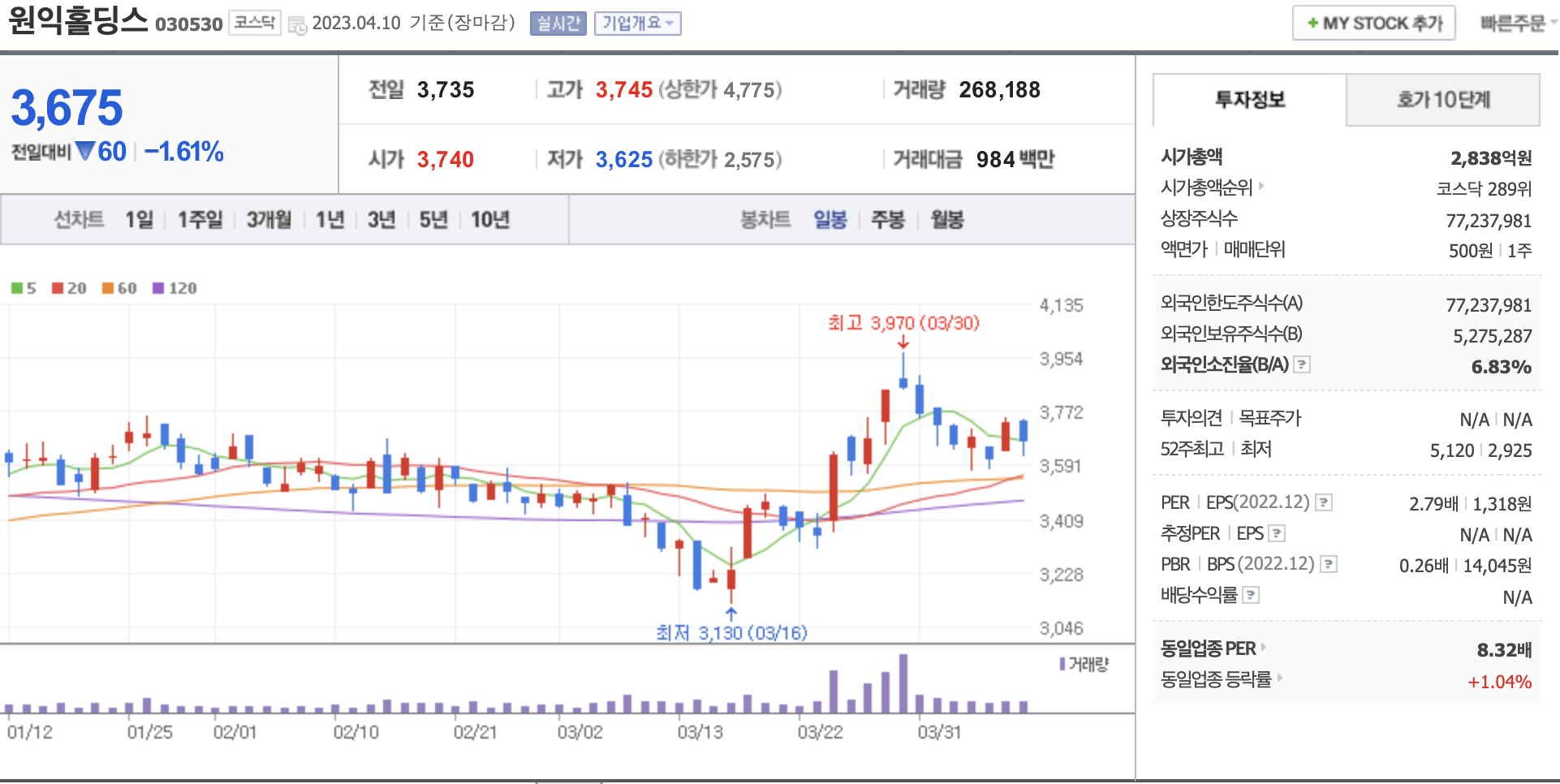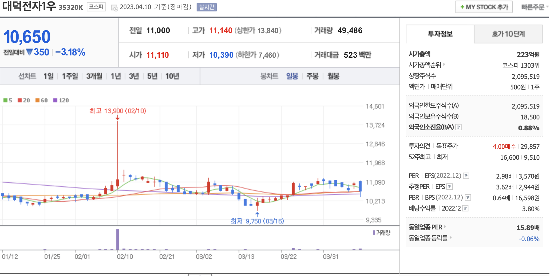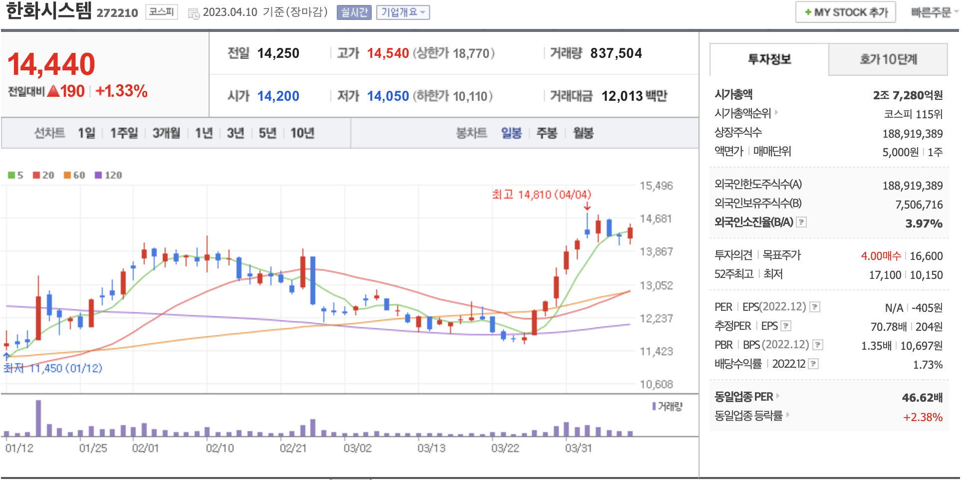 시가총액, 시가총액 순위, 상장주식수, 액면가, 매매단위, 외국인한도주식수, 외국인소진율, 투자의견, 목표주가, 52주 최고, 52주 최저, PER, EPS, PBR, BPS, 배당수익률, 동일업종 PER, 동일업종 등략률 등의 정보를 확인하세요.