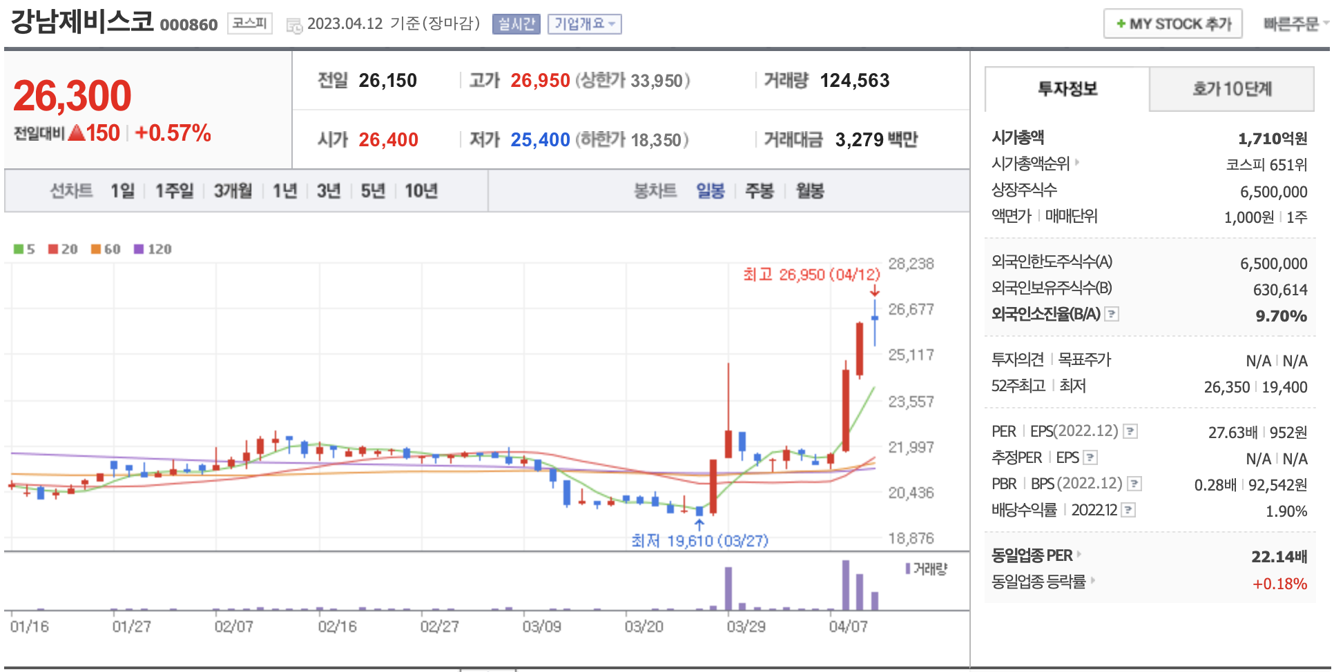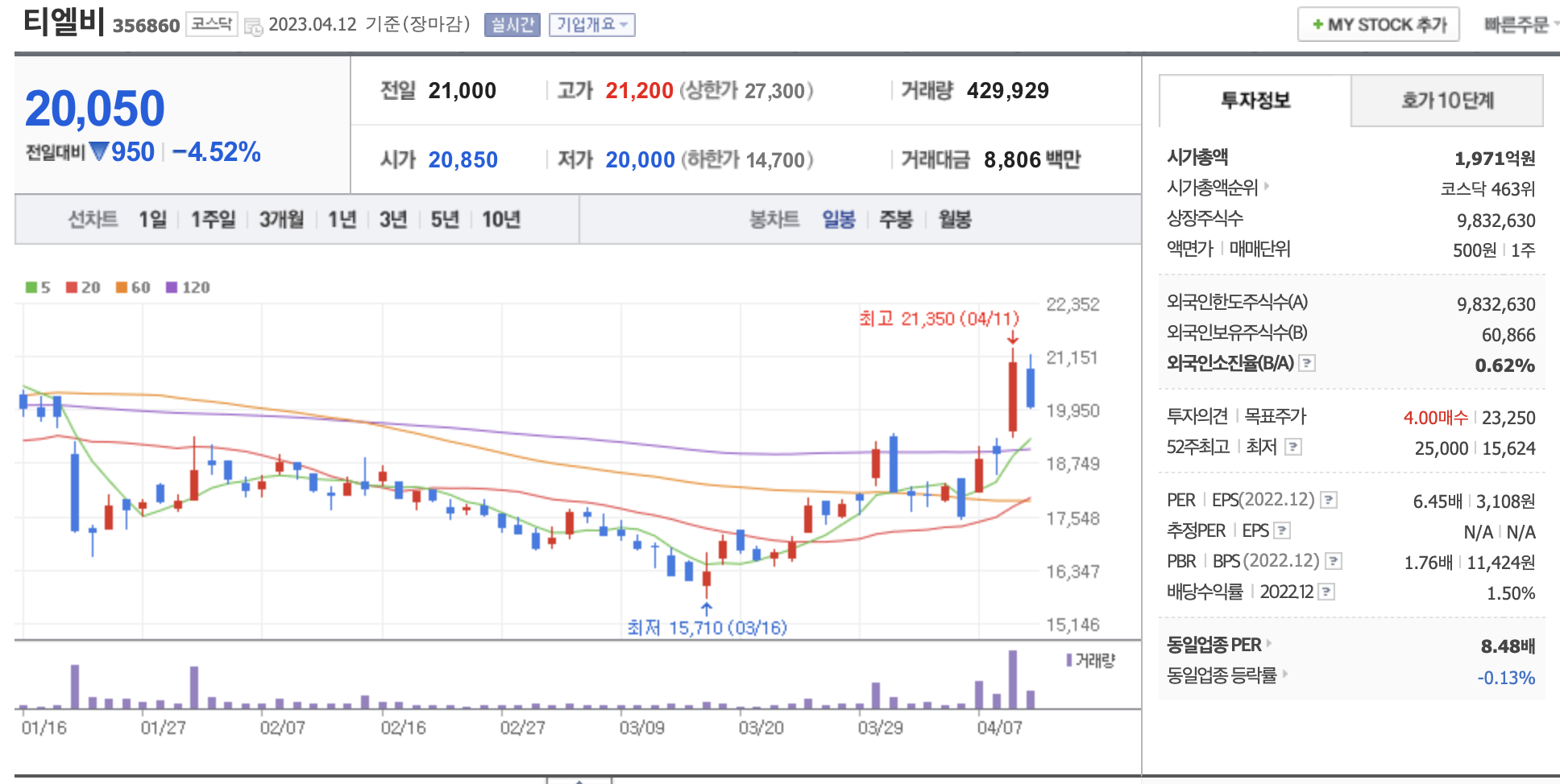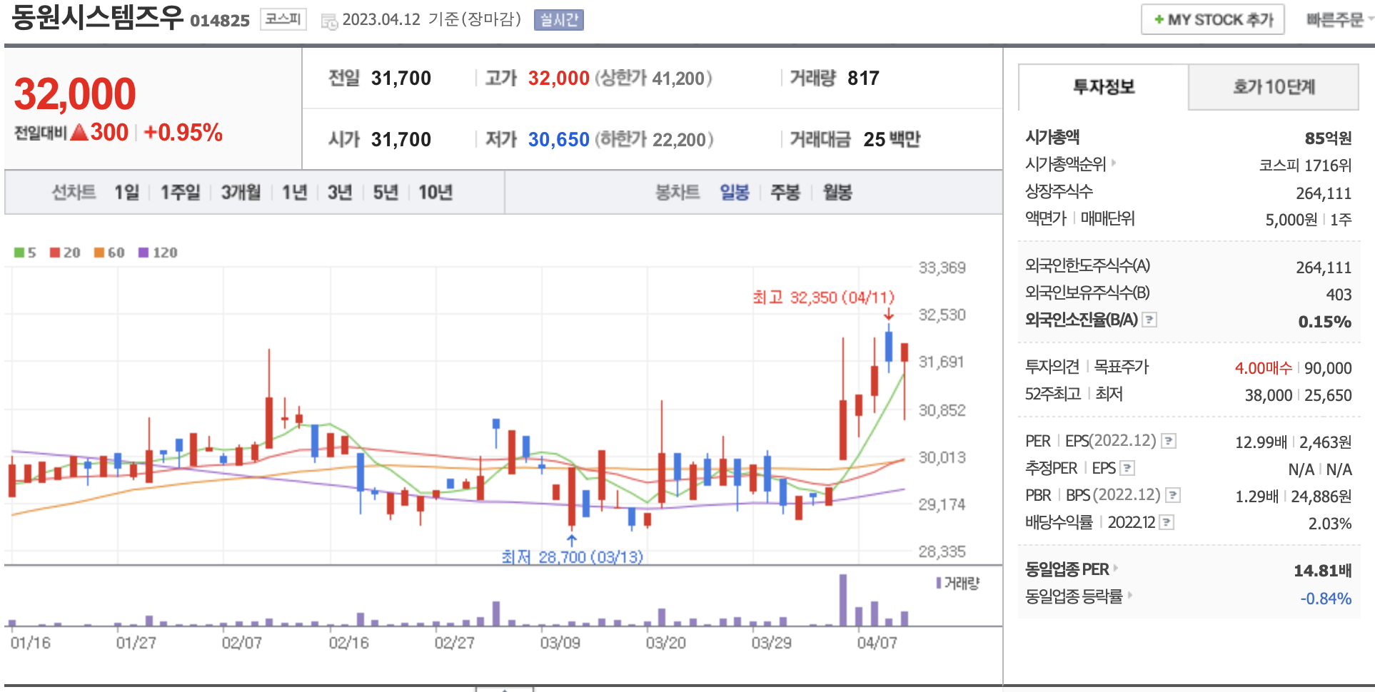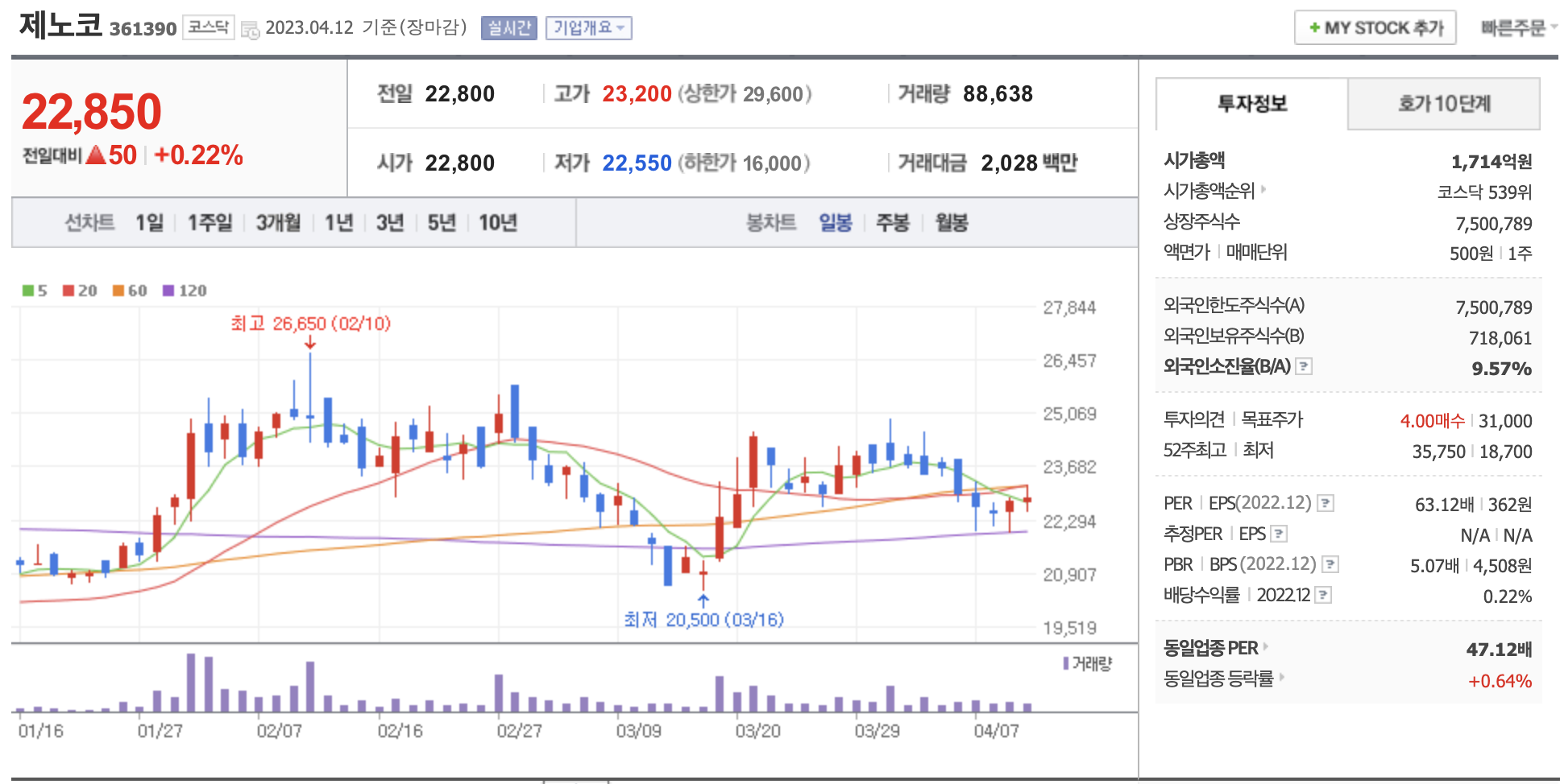 시가총액, 시가총액 순위, 상장주식수, 액면가, 매매단위, 외국인한도주식수, 외국인소진율, 투자의견, 목표주가, 52주 최고, 52주 최저, PER, EPS, PBR, BPS, 배당수익률, 동일업종 PER, 동일업종 등략률 등의 정보를 확인하세요.
