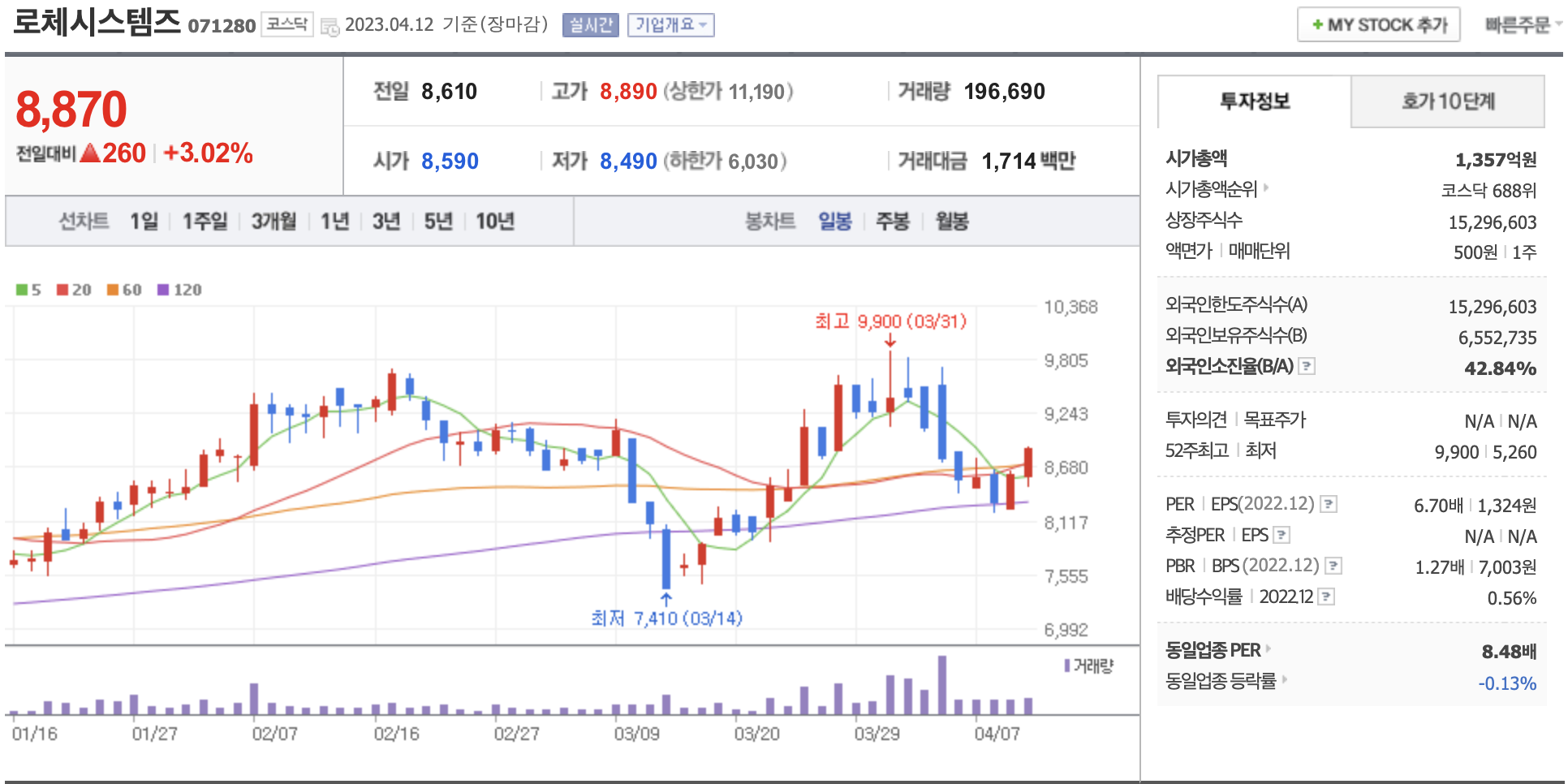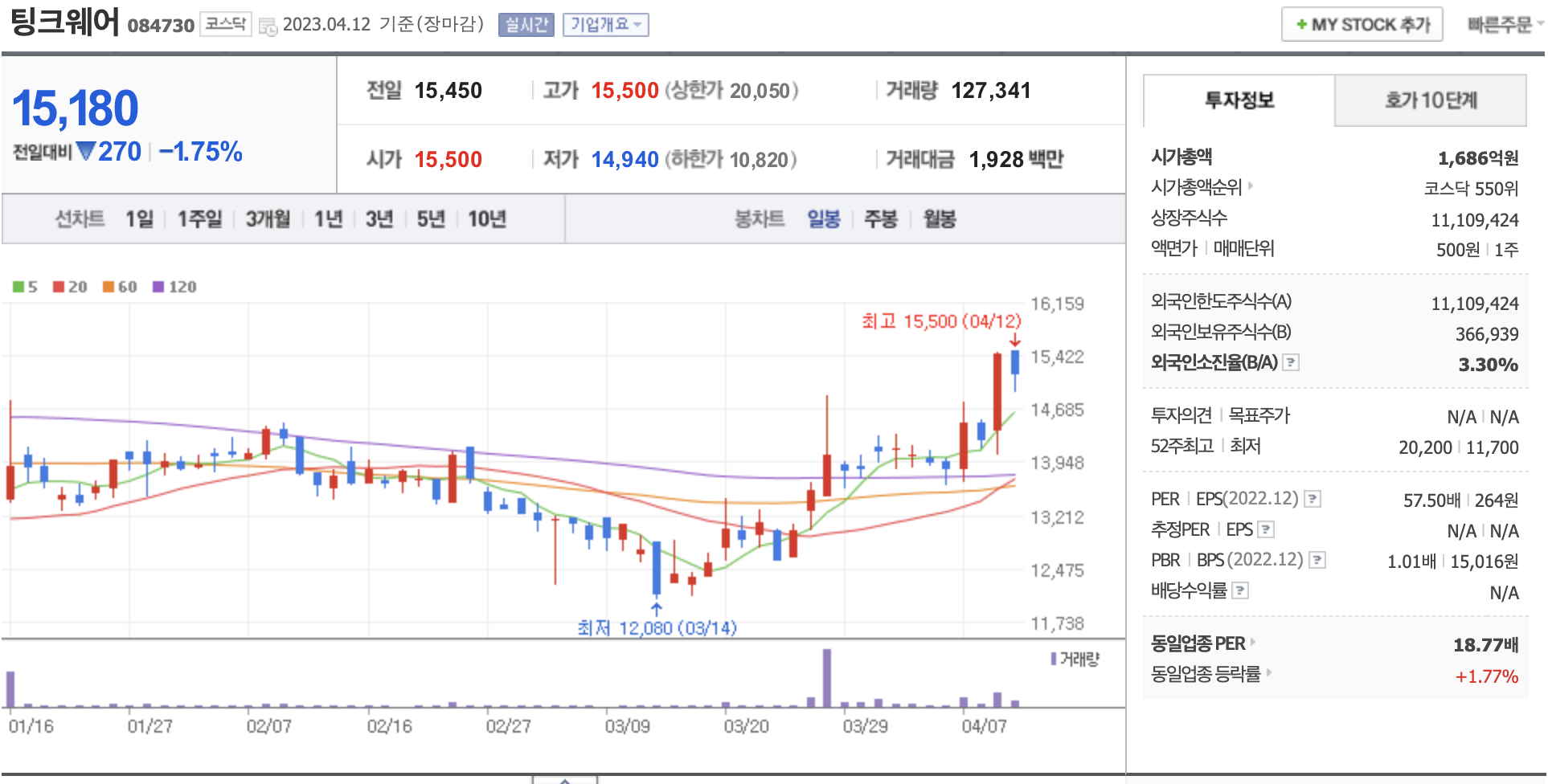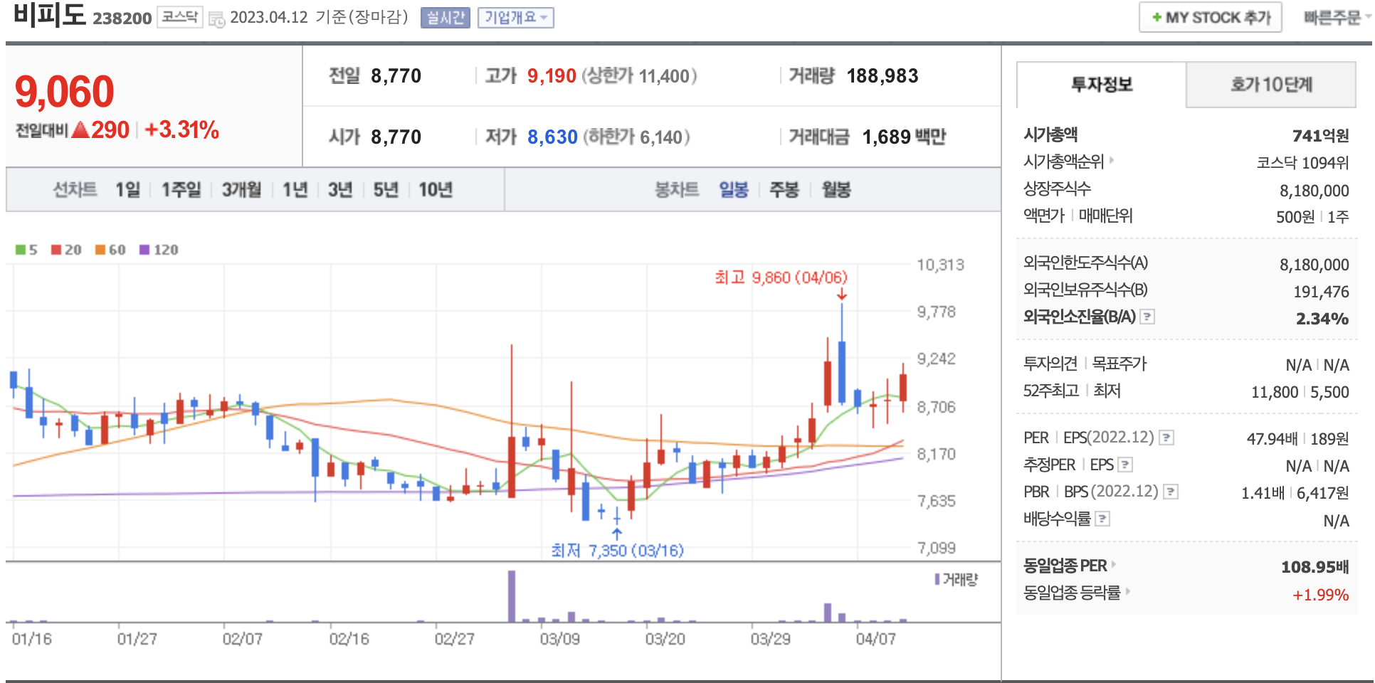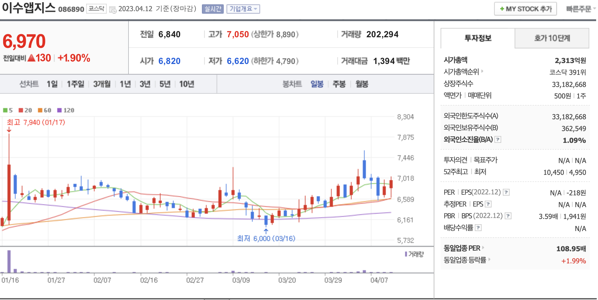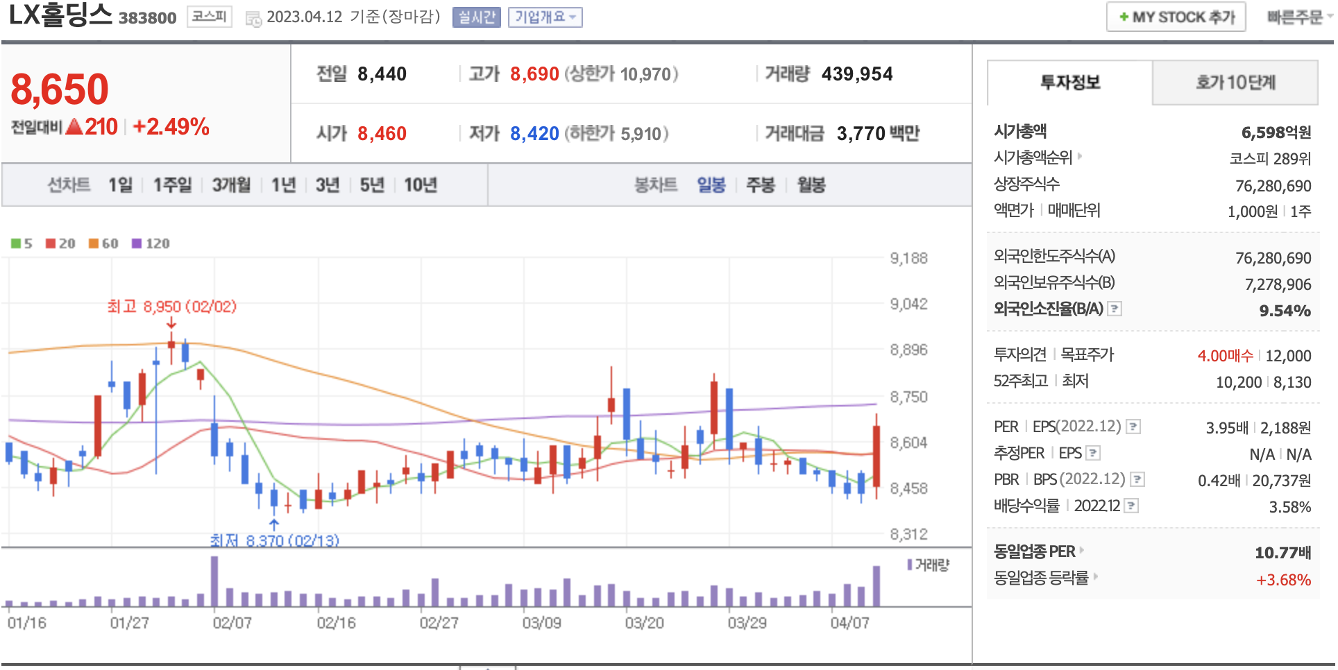 시가총액, 시가총액 순위, 상장주식수, 액면가, 매매단위, 외국인한도주식수, 외국인소진율, 투자의견, 목표주가, 52주 최고, 52주 최저, PER, EPS, PBR, BPS, 배당수익률, 동일업종 PER, 동일업종 등략률 등의 정보를 확인하세요.